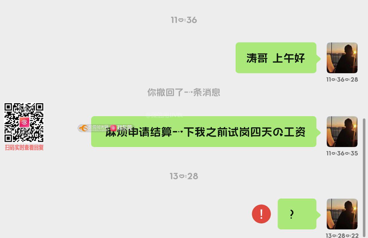 本人于2025年2月27日至2025年3月2日在老湘亲•品鉴湘菜 (高埗同富店)单位从事服务员工作,自2025年3月3日开始老湘亲品鉴湘菜(高埗同富店)单位拖欠工资,目前拖欠本2025年2月27至2025年3月2日的工资,共计607.4元。(备注声明:本人试岗4天,因一些因素无法参与工作,跟门店店长说明情况后,店长也挽留并承认我工作了四天,也有钉钉打卡四天记录,一直没有结算工资,今发消息联系店长结算工资给我,店长直接将我微信删除了)〈门店店长还在该门店继续任职店长一职,一个连锁企业居然有这种霸王行为实属不该,希望相关部门介入处理。〉