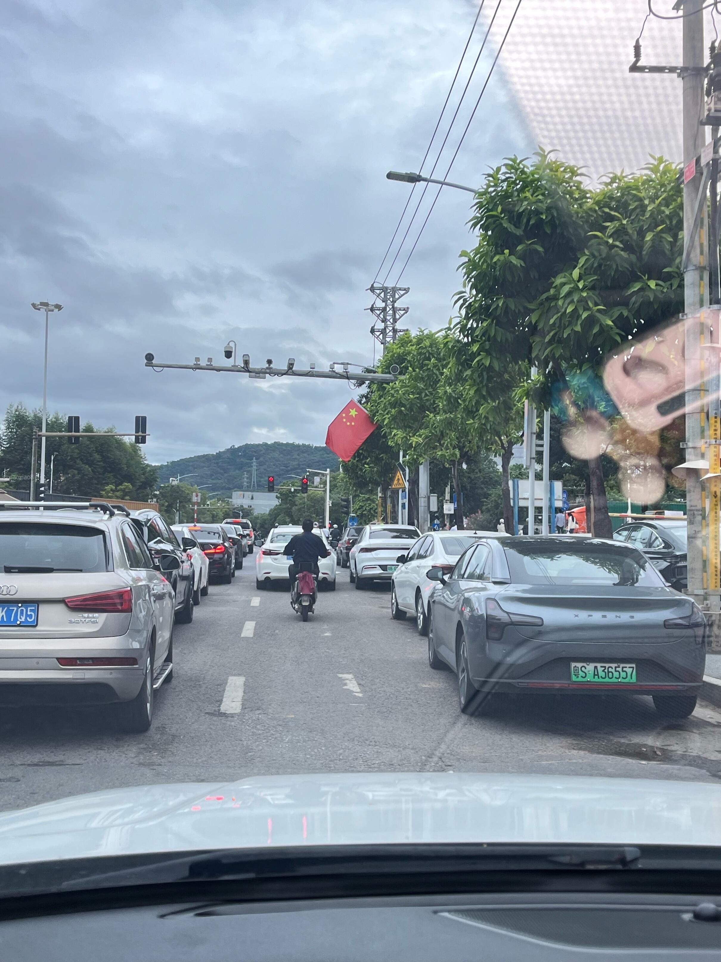 黄洞村玉泉路与东深路交界处红绿灯左右两边违停严重