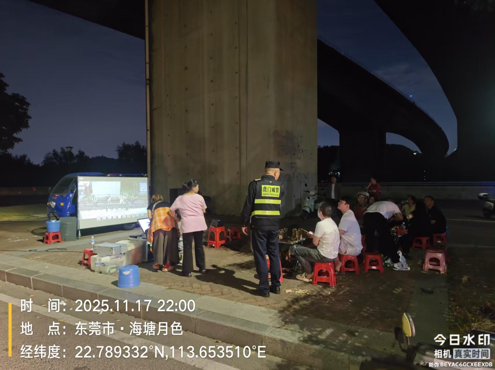 尊敬的市民,您好!您反映的问题已收悉,现回复如下:接投诉后,我分局于2025年11月17日派出中心站执法人员到虎门镇威远环岛路(沿江高速桥下段)进行调查,现场勘查确实存在群众唱歌行为,执法人员对当事人进行劝导教育,并责令其日后务必将音量降至最低,避免产生噪音影响周边居民。我分局将继续加强巡查。如有城市管理方面的问题,可致电东莞市城市管理和综合执法局虎门分局24小时值班电话:89328222或通过微信公众号“东莞城市管理”进行反映。 感谢您对城市管理工作的监督与支持!