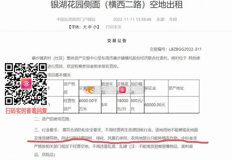 尊敬的领导:您们好,寮步镇横坑银湖花园与宝城花园南中间的空地,当初公示是只能种植农作物或仅经营园林、绿化、风景石使用。明确规定不能硬底化地面及建筑物。但该地块一直以来堆放大量建筑物,还含大量木材,存在严重的安全隐患,一旦起火后果不敢想像,并且还每天(含周末及节假日)早上七点多就开始全天大噪音施工,早上七点大货车就把小区门口堵死严重影响大家出入。小区业们主业们不堪其扰,多次投诉都没用,请领导们要求该地块承包商按公示的内容执行,谢谢!