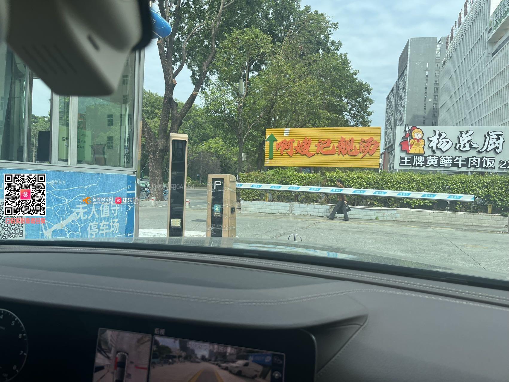 东城街道莞温路盛世东方南门(天宝地铁站D口旁)出口机器卡顿,车子倒退前进5、6次才扫到车牌
