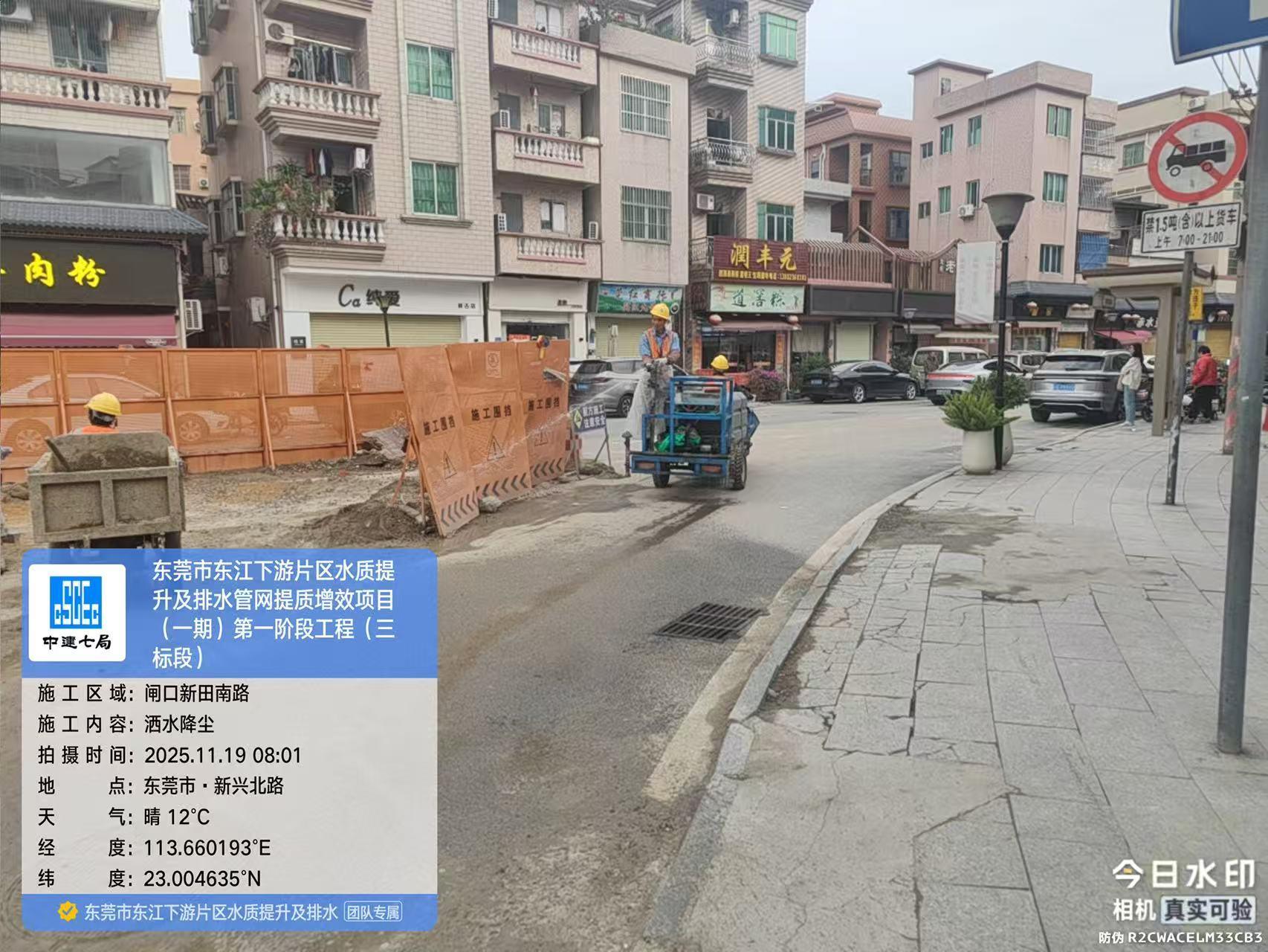 尊敬的市民,您好!您反映的问题已收悉,现回复如下: 收到反映的情况后,我们于2025年11月19日08:58电话与您取得联系,并对诉求进行办理。您反映问题的工程为东莞市水务环境投资控股集团建设管理有限公司(下称“建设公司”)负责代建管理的东莞市东江下游片区水质提升及排水管网提质增效项目(一期)第一阶段(道滘镇),施工单位为中国建筑第七工程局有限公司、中国能源建设集团广西水电工程局有限公司和广东星凤建设有限公司。 经核实,您反映的区域正在进行雨污分流管网更新改造,施工中因涉及路面开挖和渣土转运,且施工面广路长因此难以避免产生扬尘。建设公司已要求施工单位对车辆行驶路面及出场车辆进行及时冲洗,同时加强现场管理,保证施工现场洒水降尘频次,尽可能减少扬尘对您及周边居民生活环境的影响。施工期间给您带来不便,敬请谅解! 2025年11月19日,工作人员致电告知您上述情况。如有疑问,欢迎致电水务环境集团24小时客服热线96968,感谢您对我们工作的理解和支持!