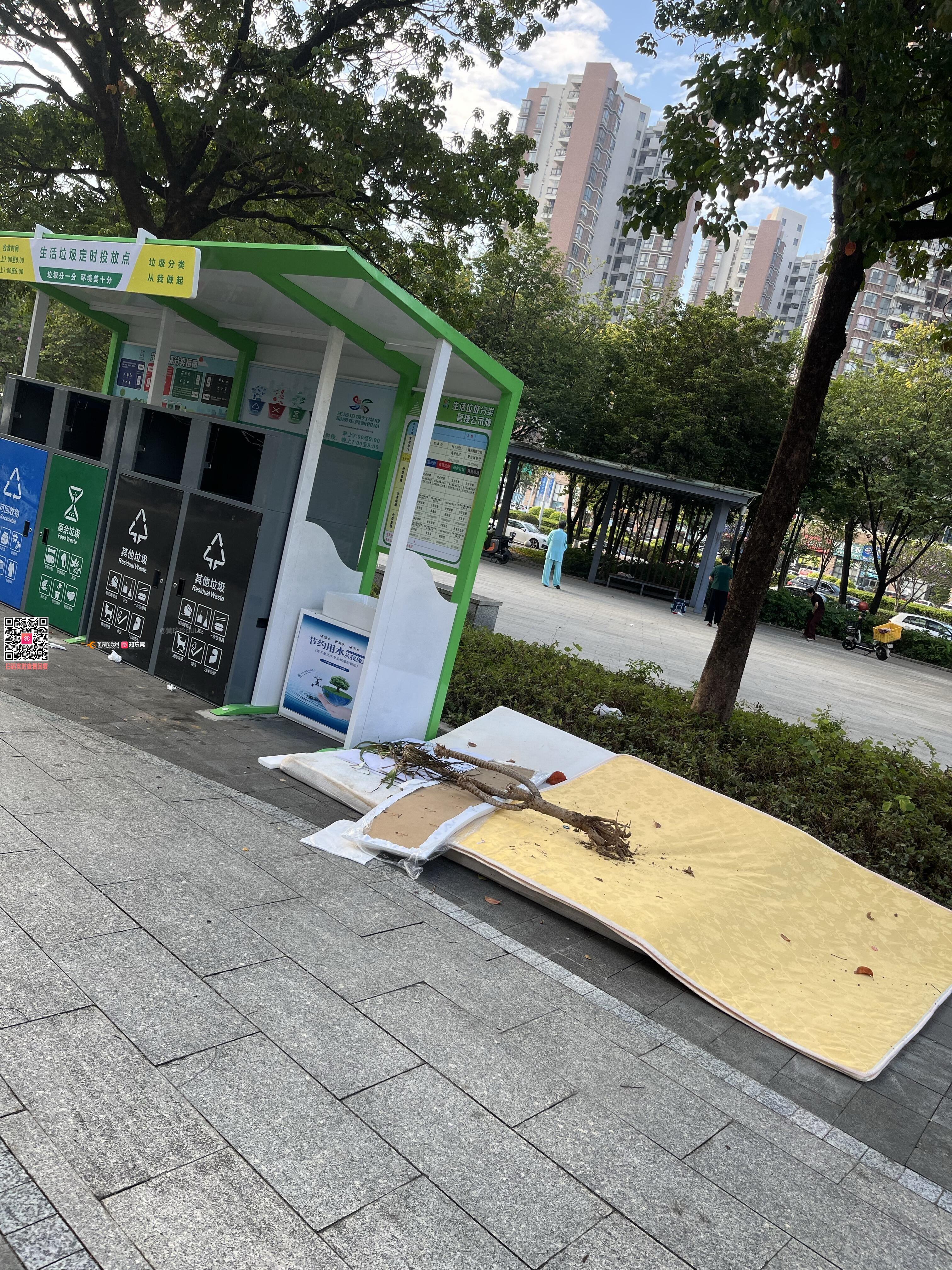 床垫放了几天没人处理,垃圾经常满地飞,水龙头也没有水还被人偷走了。而且傍边就是健身场地。
