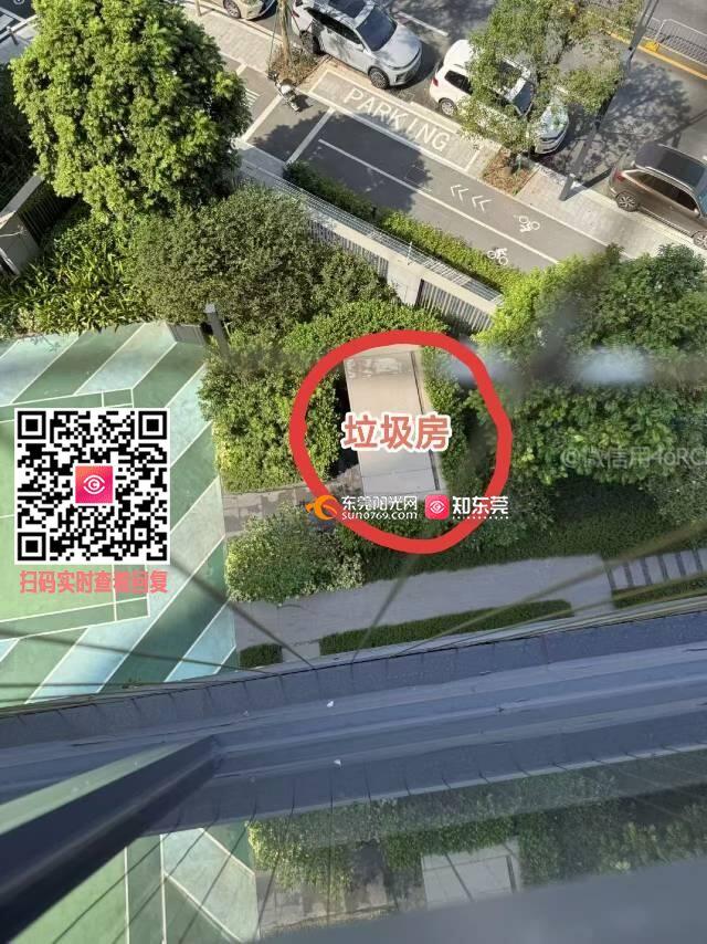 位置:松山湖松湖润府楼盘,1栋204房 具体情况描述:1楼设置垃圾收集站,就是我们阳台正下方,规格设置位置违规,距离建筑主体不足4米,每天堆放垃圾恶臭,希望有关部门能实地考察处理。