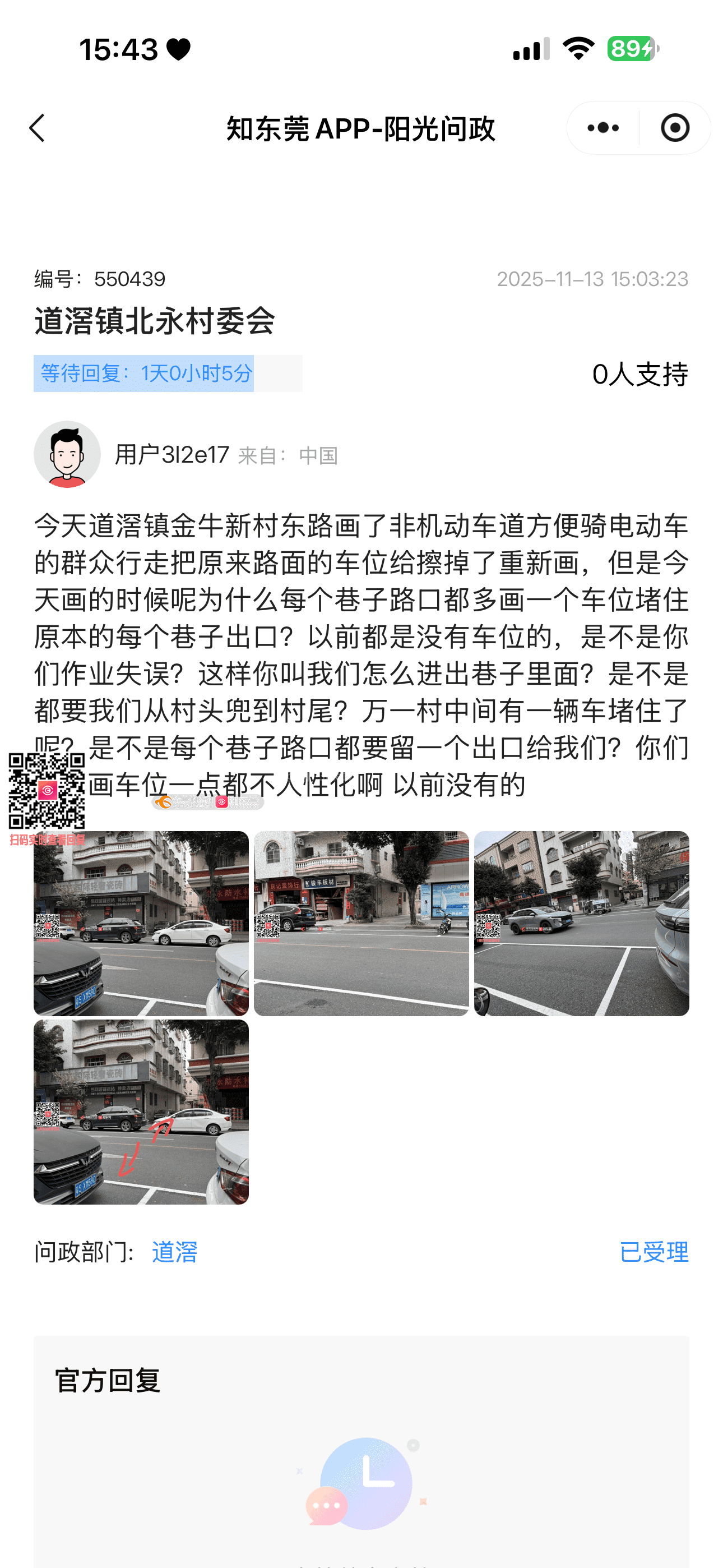 道滘镇金牛新村东路在各个巷子进出口乱添加车位,导致村民出入不方便,多名群众投诉,但各部门视工单置于不理,请问真心为民办实事,情系民心吗?