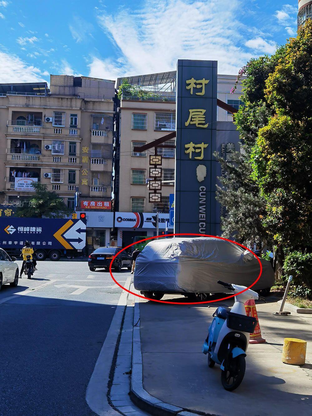 安娜花园旁村尾村路口路面乱停乱放
