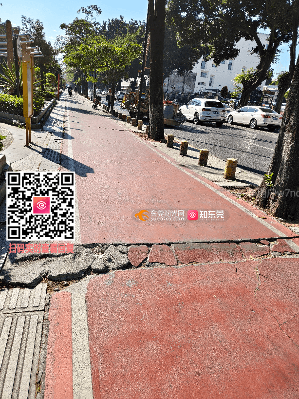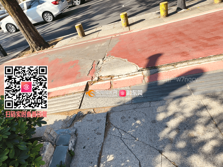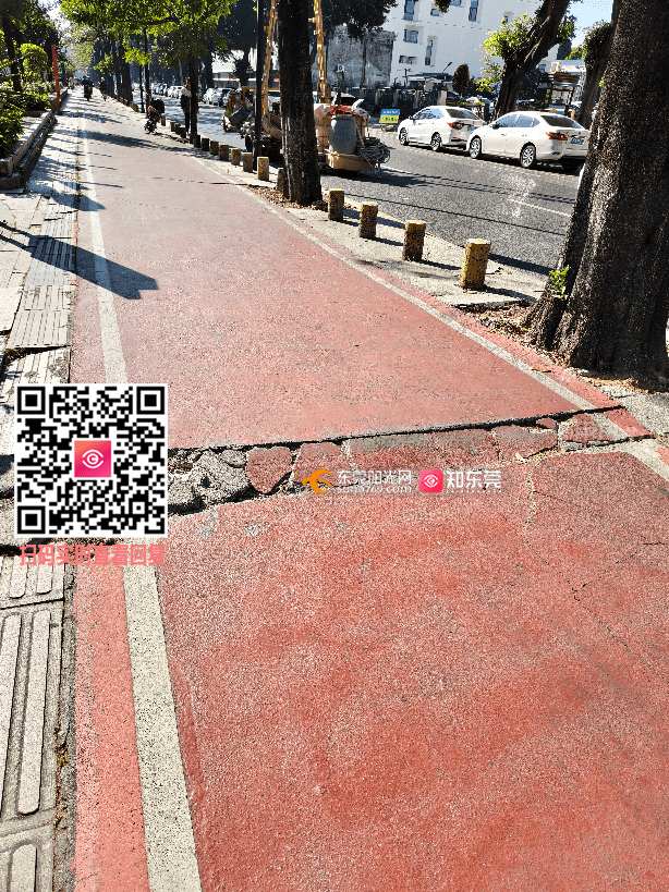 东莞莞城市中医院分院隔壁人行道自行车道整条路都坑坑洼洼是烂的