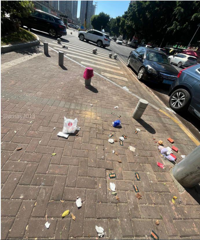 寮步珑远翠珑湾门口小摊贩收档后留下的垃圾谁负责清理? 天天人行道被小摊贩挡道,收摊后垃圾遍地。