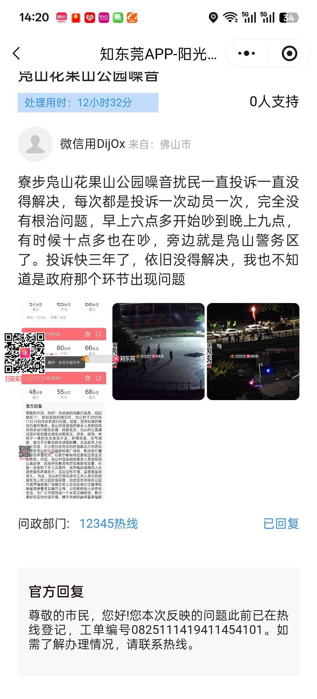 寮步凫山花果山公园噪音扰民一直投诉上报一直没解决,每次都是打哈哈过去。有一种普通人维权真艰难的样子啊。白天吵晚上吵,天天吵