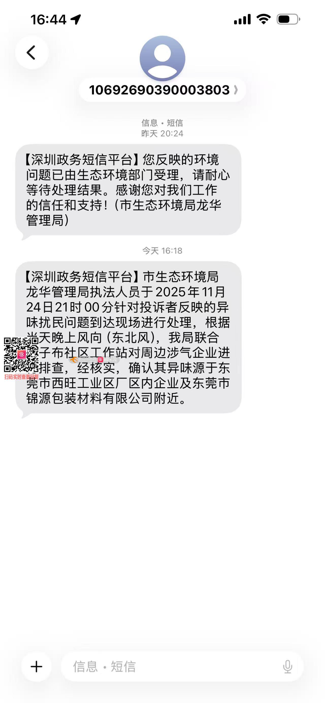 东莞凤岗 西旺工业区,有工厂在下午,晚上及凌晨排放废气,污染严重。在深圳都能闻到味道,引发喉咙鼻腔异样。经过深圳环境局的检测,已确认是在西旺工业区排放的。 请贵单位对西旺工业区进行监督和治理,感谢🙏。
