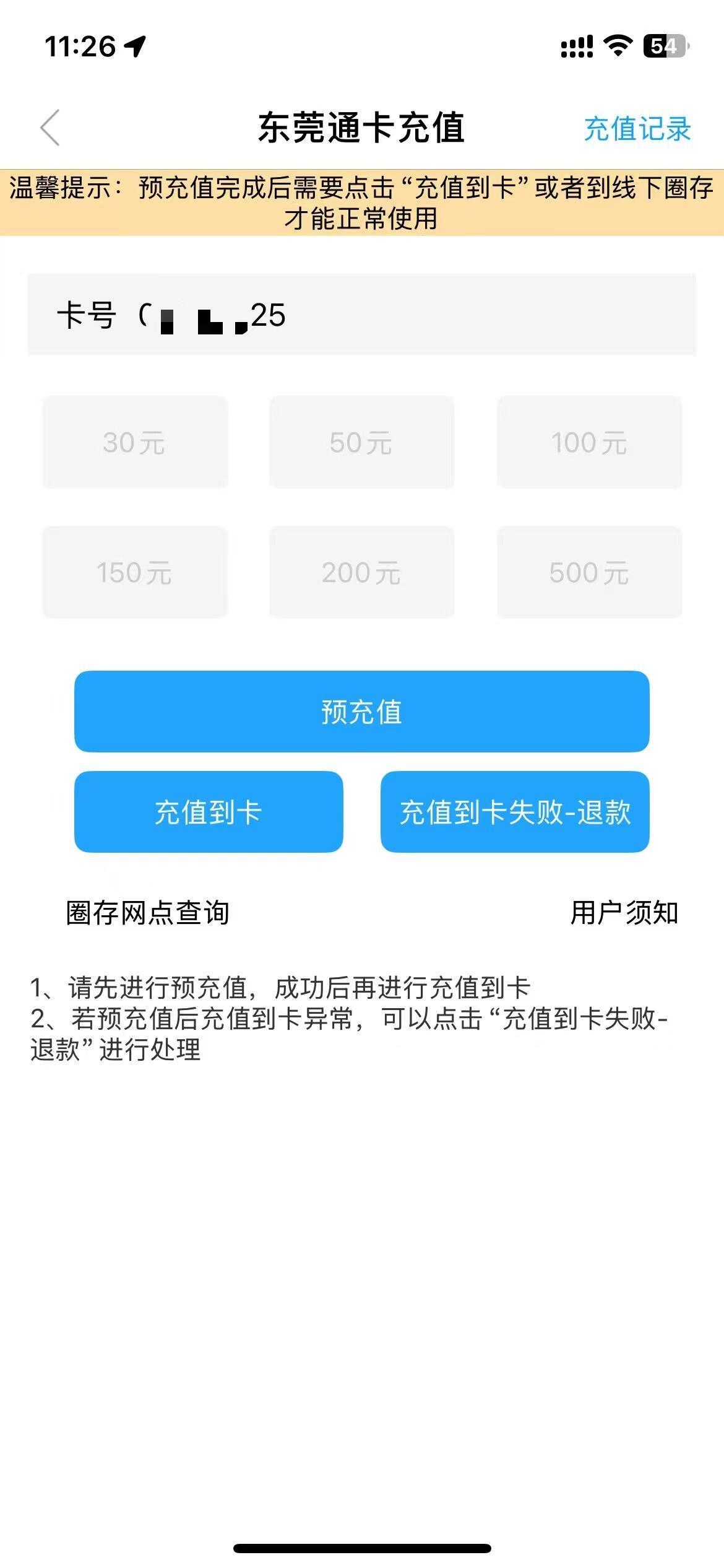 东莞通卡充值问题