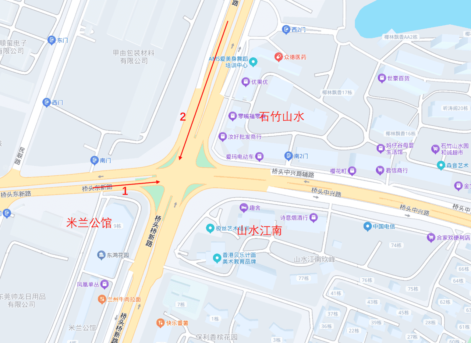 随着桥头东新路-中兴路与桥头桥新路红绿灯附近越来越多的工业园建立及公司入驻导致该红绿灯在晚上经常发生严重拥堵,过一次红绿灯要等5-10分钟不等 如图片1标识所示桥头东新路至中兴路方向,由于左转道很短,且绿灯时间只有22秒,导致晚上6点到7点严重堵塞。请问能否调整绿灯时间或延长左转道的长度,减少左转车辆堆积在直行车道,提高直行车辆通行效率 如图片2所示,桥头桥新路由北向南方向左转车辆较多,导致晚上6点到8点半左右左转车辆堆积,导致直行车也前进缓慢。请问能否调整绿灯时长或借用中间车道用于左转车道(目前有两个左转车道,另有一条中间车道为禁行区,未使用),提高通行效率