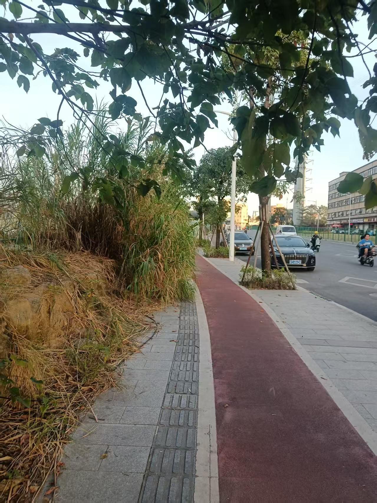 麻涌华阳湖一号华阳工业区公交站后人行通道杂草丛生,影响周边住户行人通行,开电动车经过很容易被杂草割到,麻烦市政园林单位处理一下