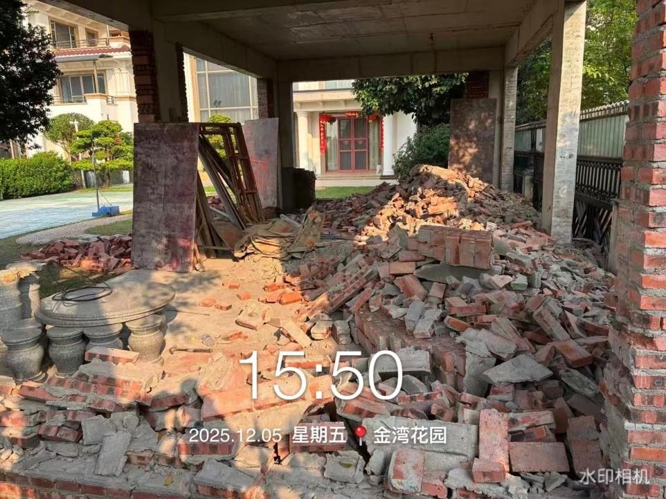 尊敬的市民,您好!您反映的问题已收悉,现回复如下:接投诉后,我分局于2025年12月5日派出执法人员联同社区工作人员到现场进行调查,经检查,现场发现有两名施工人员对围园的凉亭进行砌砖,执法人员立即对业主及施工人员进行严肃的教育同普法,责令其马上拆除整改,现已整改完毕。如有城市管理方面的问题,可致电东莞市城市管理和综合执法局虎门分局24小时值班电话:89328222或通过微信公众号“东莞城市管理”进行反映。(东莞市城市管理和综合执法局虎门分局)关于市民反映“别墅业主违法建设”的问题,接诉后,依据市民反馈内容与物业方进行了对接沟通。经核查,涉事小区18号别墅业主私自在自家花园内修建凉亭。目前,物业方已于12月1日再次向涉事业主送达《整改通知书》,明确要求其限期拆除违规搭建的凉亭、恢复花园原状并就此事上报城管执法部门。依据市住建局《关于进一步加强物业管理区域装饰装修、危险作业管理的通知》,我所要求物业方严格依照文件规定,规范物业管理区域内装饰装修、危险作业的申报登记工作,并加强对装修装饰工程的监督管理。同时,我所要求物业方按照《东莞市物业管理条例》第五十六条的相关要求,对违反法律以及临时管理规约、管理规约约定的装饰装修行为进行劝阻、制止,同时及时报告有关行政管理部门。如对上述回复内容有疑问,请联系虎门镇房地产管理所,联系电话:85161808。(东莞市虎门镇房地产管理所)