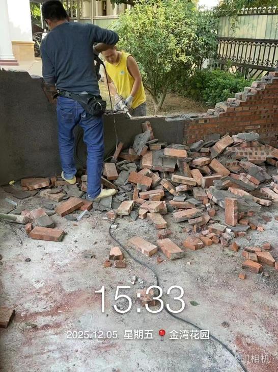 尊敬的市民,您好!您反映的问题已收悉,现回复如下:接投诉后,我分局于2025年12月5日派出执法人员到虎门镇南栅金湾花园别墅18栋进行调查,经检查,现场发现有两名施工人员对围园的凉亭进行砌砖,执法人员立即对业主及施工人员进行严肃的普法教育,责令其马上拆除整改,现场施工人员已经对砖墙拆除完毕。我分局将继续加强巡查。如有城市管理方面的问题,可致电东莞市城市管理和综合执法局虎门分局24小时值班电话:89328222或通过微信公众号“东莞城市管理”进行反映。 感谢您对城市管理工作的监督与支持!