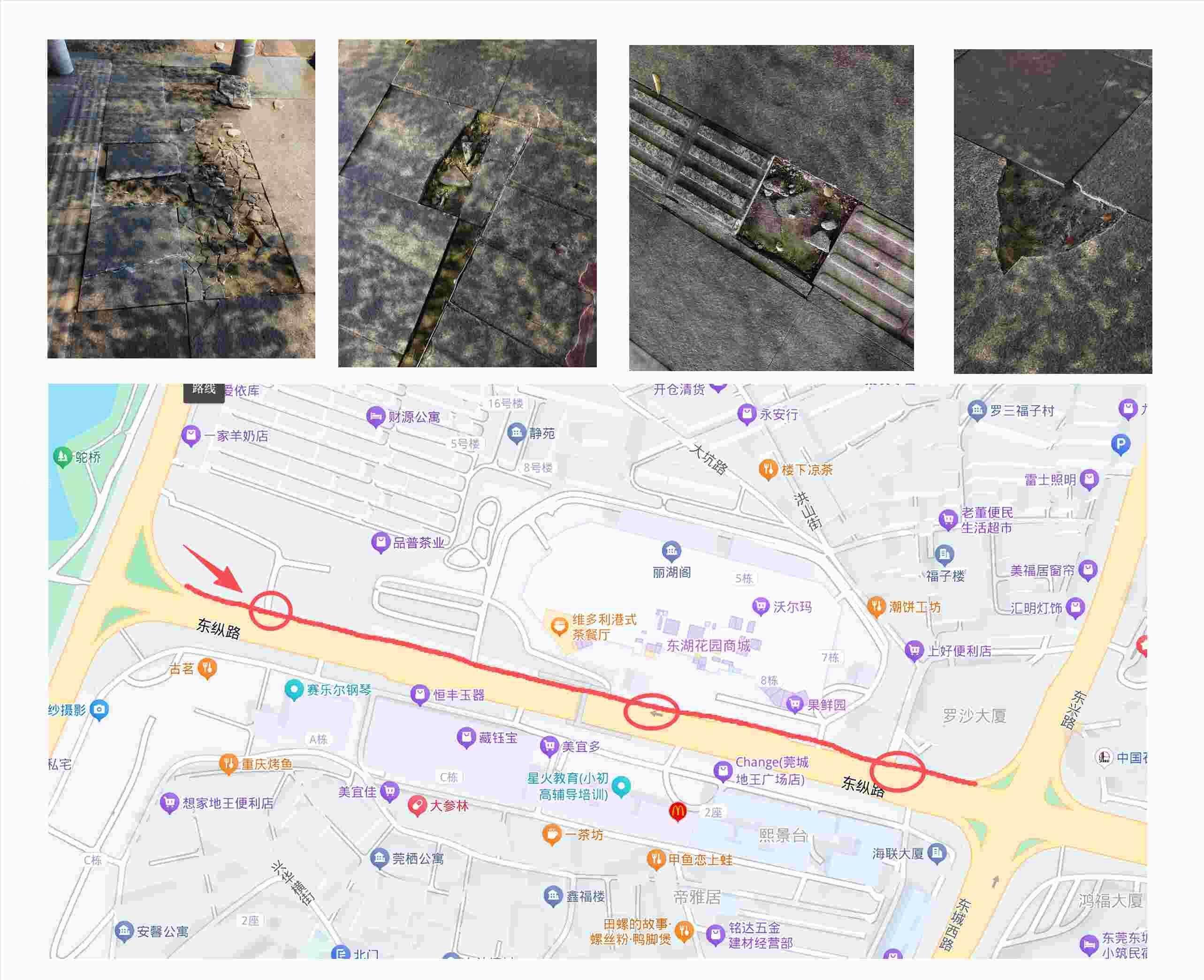 莞城人行道破破烂烂,百姓出行苦不堪言 1、东纵路3号罗沙市场停车场出口,人行道破烂不堪。 2、东纵路罗沙路口至东兴路口,特别是沃尔玛路段人行道已非常破烂。 东纵路居民较多,小孩上学老人逛公园十分不便,恳请城管人员为民办实事,感谢。