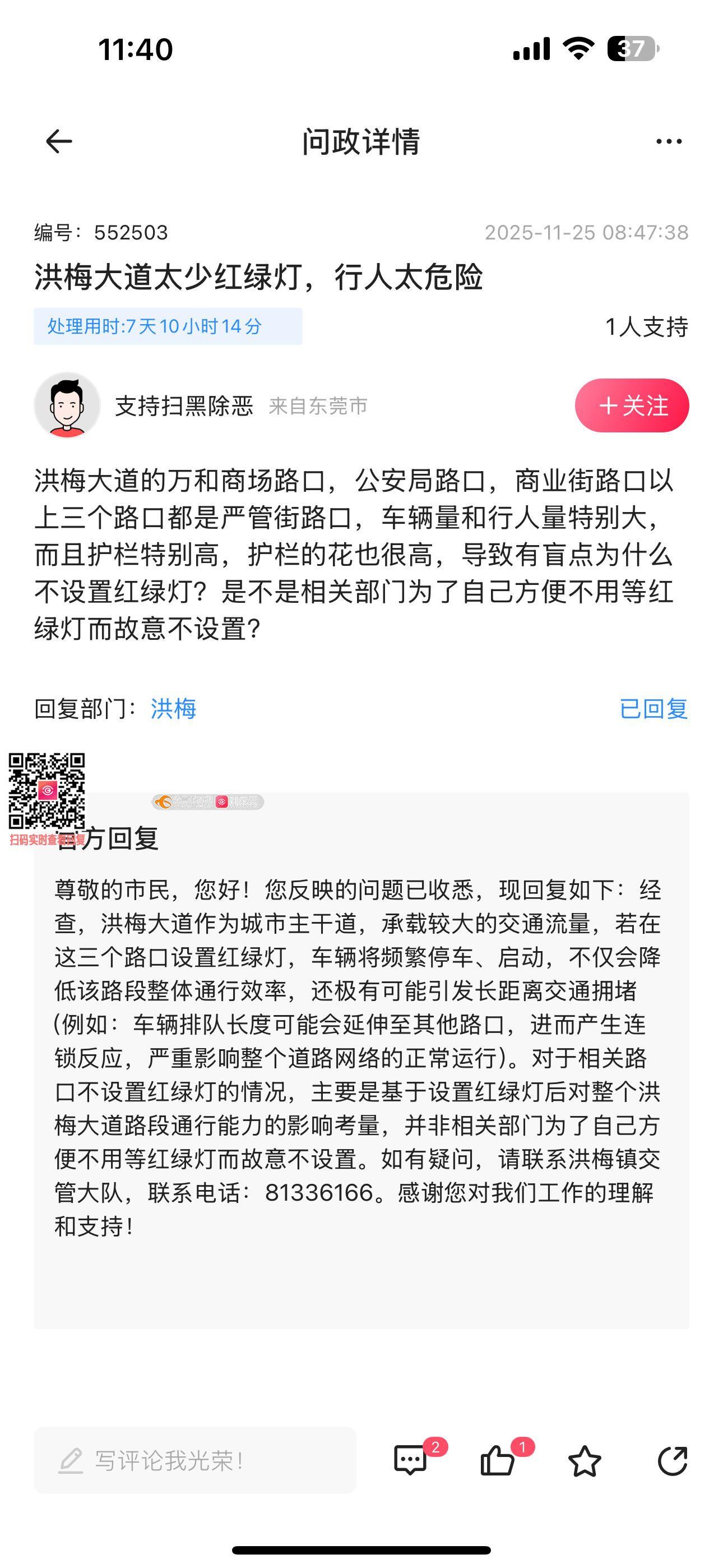 洪梅大道没有红绿灯设置,镇街不作为
