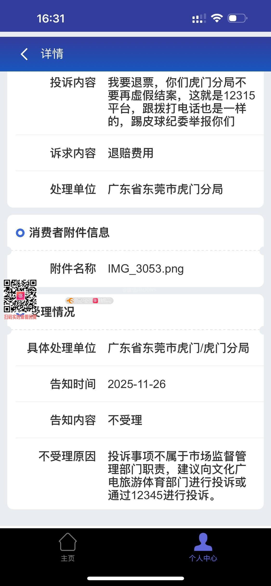 官商勾结,本人2025.11.20购买主办方为东莞旗乐胜地文化传播有限公司,在深圳举办音乐会的门票,于2025.12.20开演,本人11.26提出退票,是购买七天內,企业霸王条款不同意退票严重侵害消费者权益,本人多次投诉东莞市场监督管理局不予受理,拨打东莞12345私自结案踢皮球到举办地处理,市场监督管理局不管当地企业的违法行为。