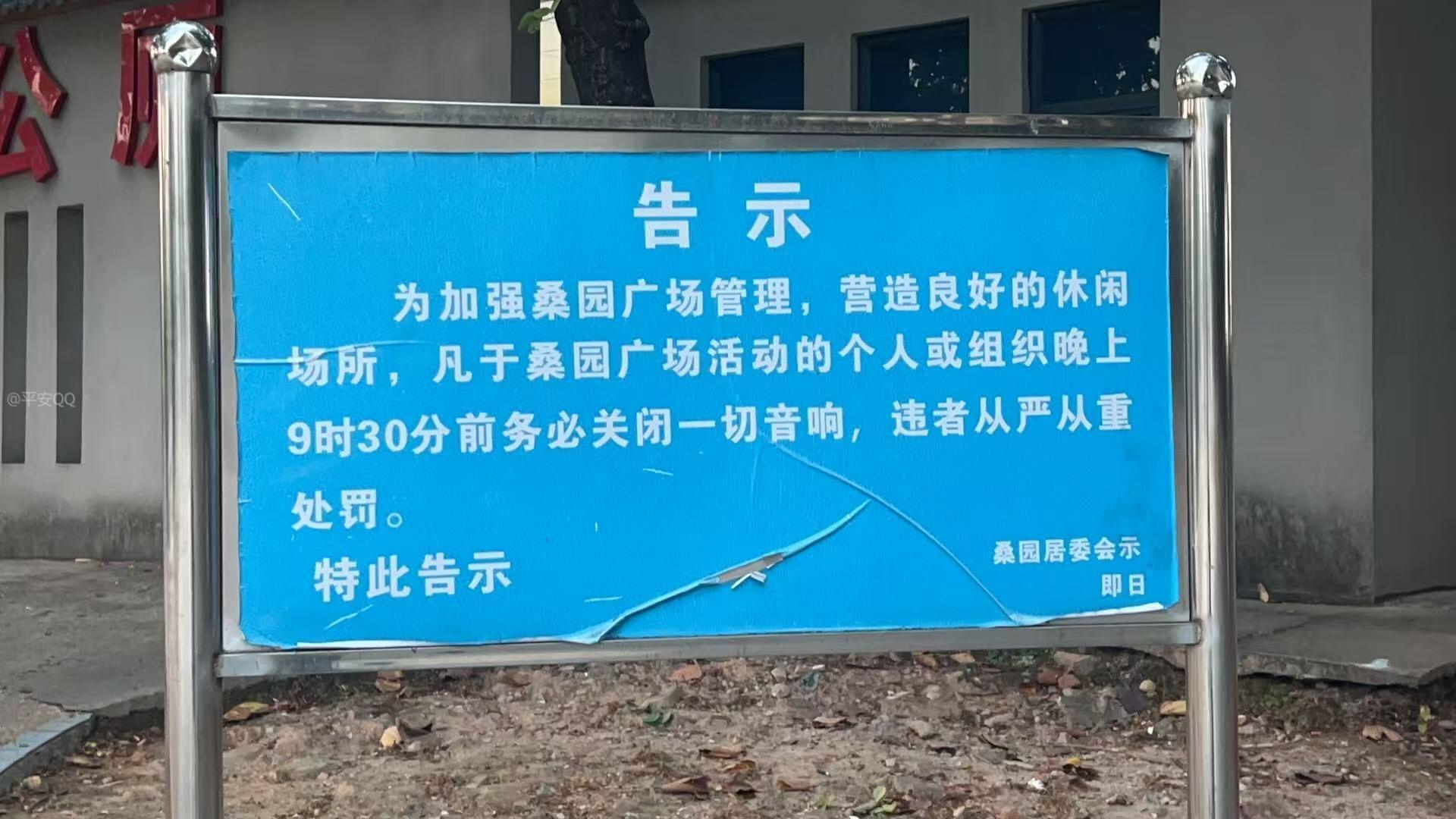 发现桑园广场有警示牌警示,设立单位为桑园居委会,严禁晚间 9:30 后有任何一切声响。但是只是形式主义,宣而不治,疏于管理。从过去一直存在的噪音扰民情况来看,有关负责单位长期不作为,不对任何噪音扰民之投诉加以重视!