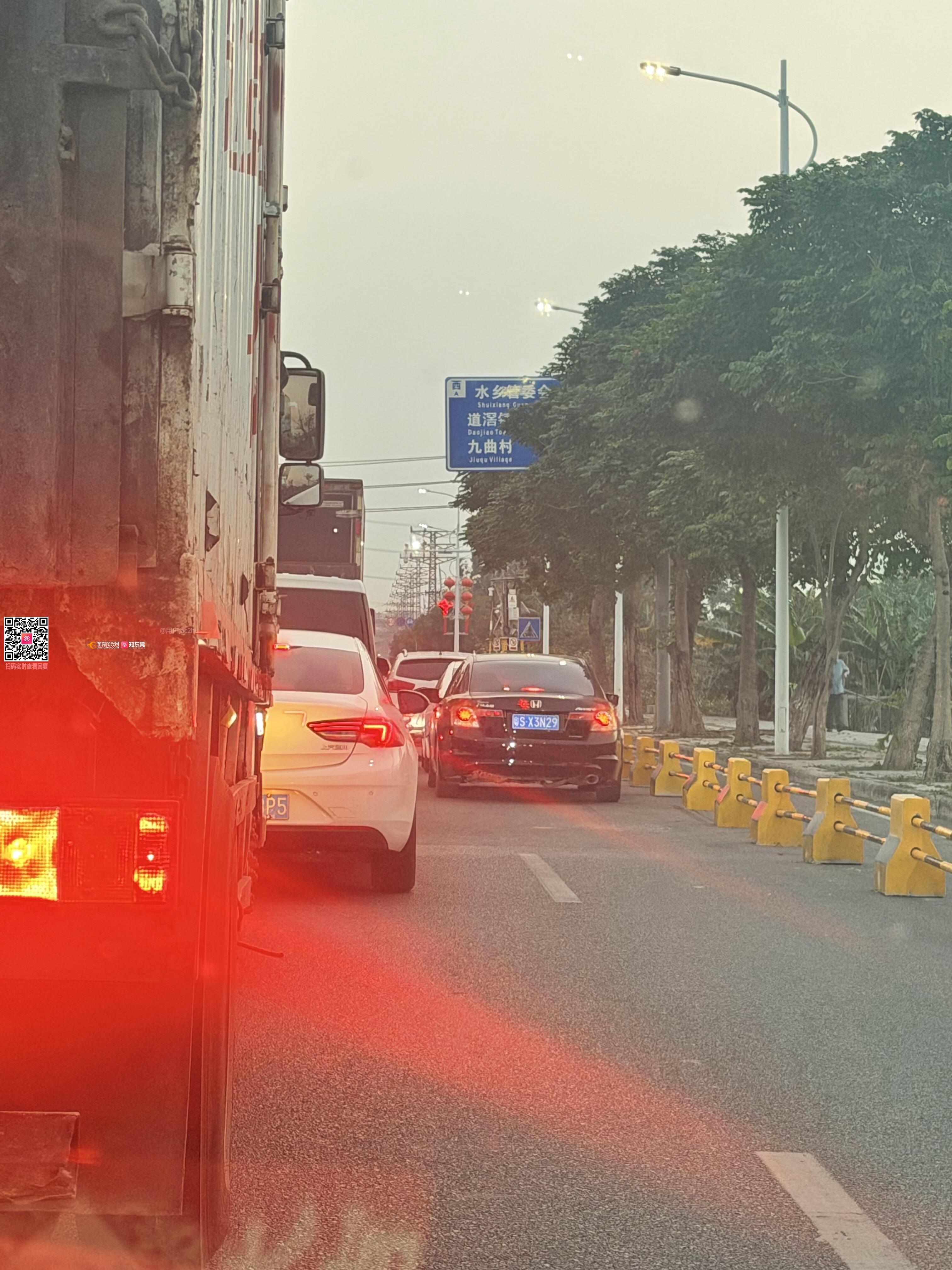 道滘镇大众路与实验路交叉路口的红绿灯左转灯与对向车道直行方向冲突,现只有一条车道,导致拥堵啊
