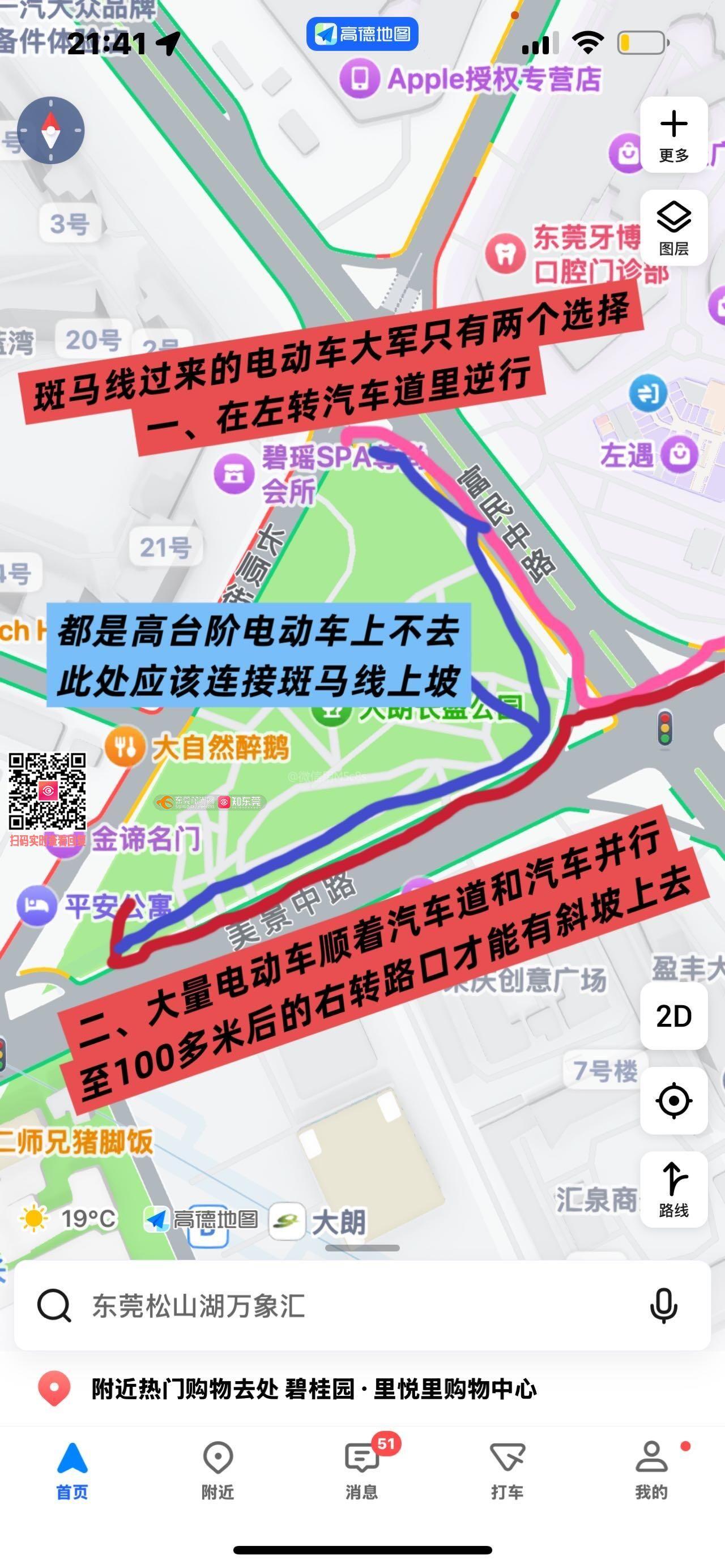 地铁口的长盛公园刚建好居然没有考虑电动车流量最大的镇中心大润发的斑马线,没有做上坡辅道,逼得电动车大军一、在左转的汽车道里和迎头而来的汽车同道逆行!二、顺着汽车道和汽车并行至100多米后的右转路口处一个小斜坡上去!非常危险⚠️等于这一段路没有自行车通道!