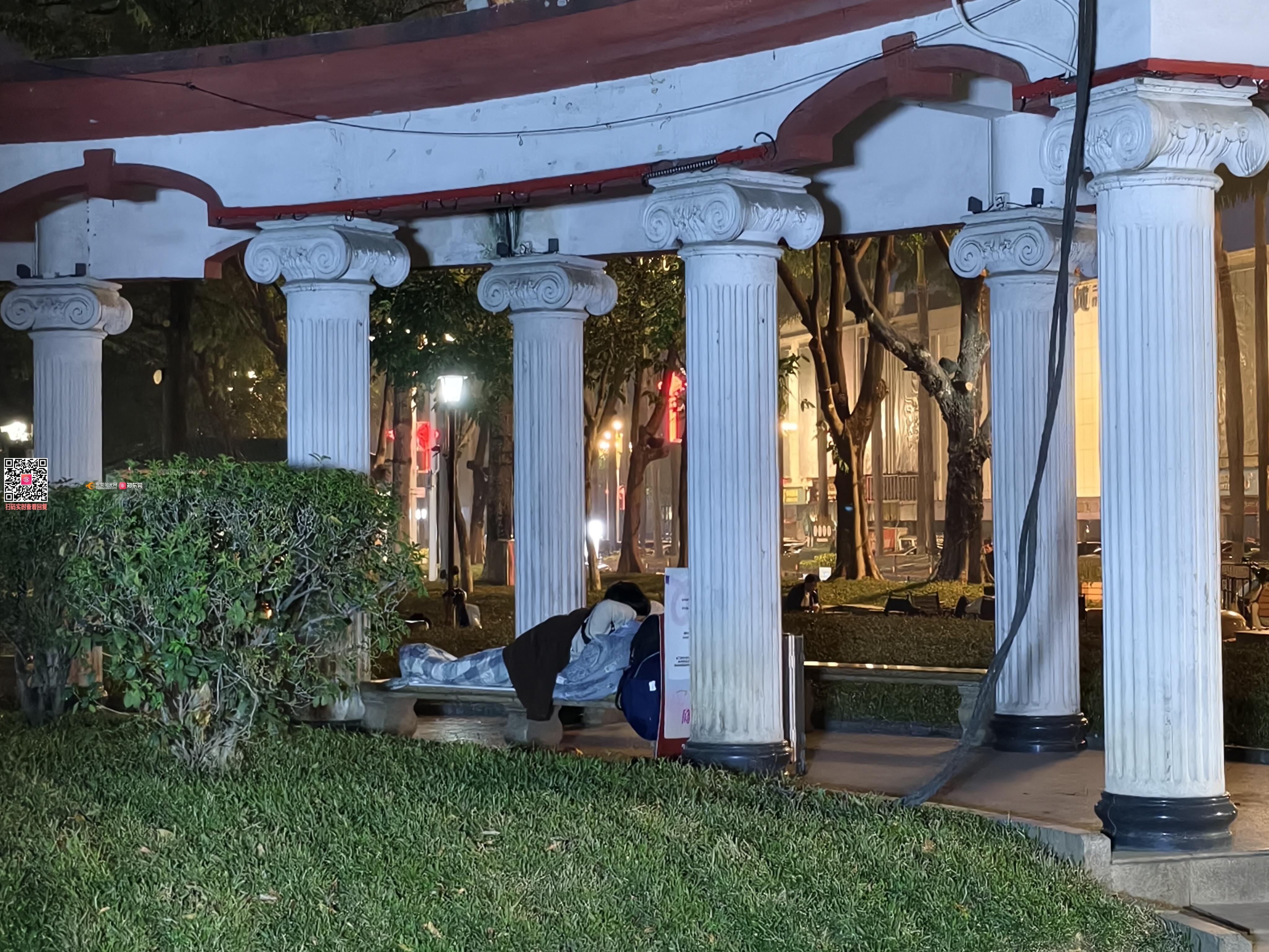 大岭山广场有人长期在公园座椅过夜,请安排相关人员了解一下情况,现在天冷了