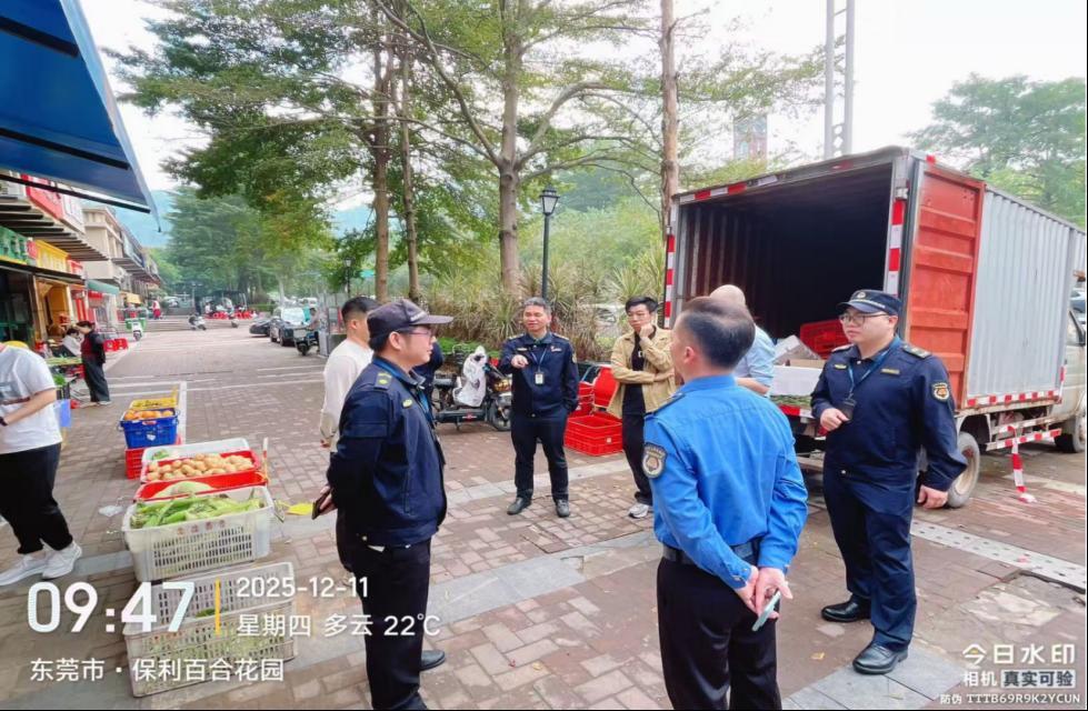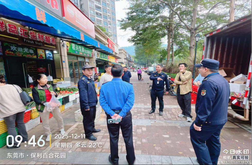 我是凤岗五联保利百合花园的一名业主,投诉凤岗五联镇兴路保利百合4-103号商铺(鲜品汇生活超市),7月底开始扩大装修,装原有2间门面扩大至3间,然后挨着墙体砌了一排剁肉台,2025.08.01开始营业,从2025年8月1号营业当天开始,每天早上6点多营业开始至晚上21:30左右几个台子就开始剁肉,从早到晚声音顺着墙体往楼上住户家里传,每天整个房间都是咚咚咚的声音,家里老人小孩每天饱受噪音污染,(老人患有高血压,心脏病)已经严重影响正常的休息,(本人已跟物业多次过去沟通无果)凤岗执法局的同志目前过去执法不下于20次,通知商户整改,每次商户都是敷衍,当天没有发出噪音扰民了,过2天又被咚咚咚的剁肉声音惊醒,希望彻底解决这种噪音扰民的问题(拆除现在的剁肉台位置,挪到别的位置,现有剁肉台位置不拆除就不能彻底从源头解决),每次过去口头教育,对商铺没有产生任何的约束力,每次执法队过去好几天,过几天又开始,这样反反复复形成恶性循环,起不到彻底整改的效果,还造成政府的资源浪费(源头整改拆除靠墙的剁肉台),12月5号执法队刚过去了,今天早上12月10号早上7:00不到又被咚咚咚的几下剁肉声音吵醒,这让怎么休息,何来安静的环境休息,求执法部门不能每次口头教育,对商铺没有任何的约束力可言,要从源头解决才是根本(想问一下具体投诉哪个部门可以彻底解决?今年能不能解决?)