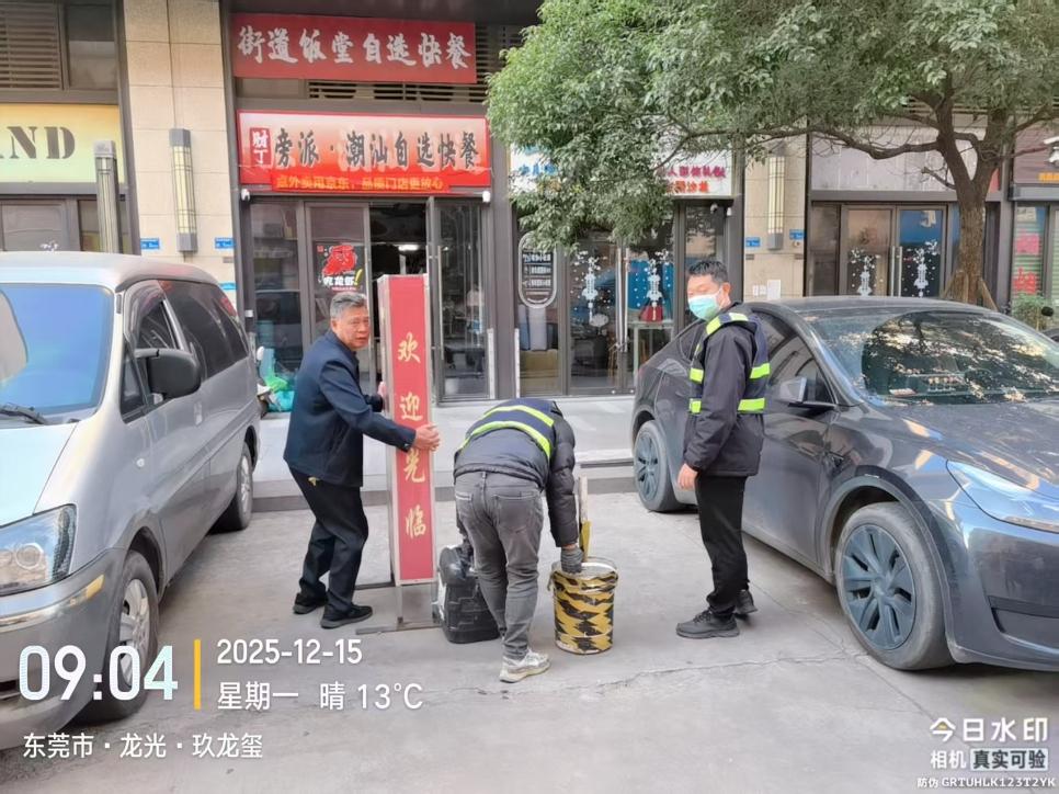 龙光玖龙玺小区东门的那条路,九月奇迹对面的(寻微花艺),酷车吧对面的(铭丰泰)(潮汕快餐)占地为私家车位。