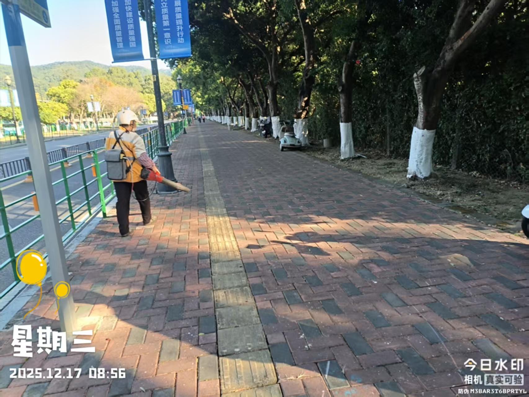 长安莲花山郊野公园 莲花山入口-莲花古寺这一段人流量大 健身好地方 1:目前存在缺陷:环卫工人全程用吹风机吹扫路上树叶 不分时段!导致绿道中粉尘大 影响游客徒步 2:建议:非高峰时段(例如正午1点)吹一遍就够 ,或改成扫把清扫 减小粉尘飞扬!树叶本身并不脏 粉尘大直接影响爬山体验 3:目的:游客爬山 希望空气清新 不要粉尘飞扬 有吹风机噪音!路中有少许树叶并没有影响 希望能改进