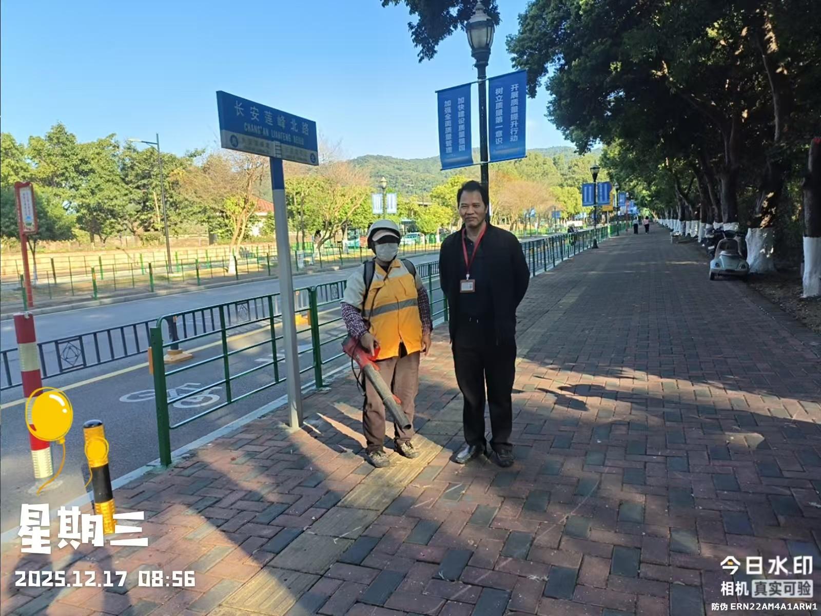尊敬的市民,您好!您投诉的问题已收悉,回复如下: 我分局接到投诉后,于2025年12月17日08时55分到达现场进行勘察。经调查,投诉情况属实。我分局执法人员现场对环卫工人进行了宣传教育,向其解释扬尘的危害性,并依法责令其立即进行整改好,以免影响周边居民的正常生活。接着,已联系中心片区环卫负责人沟通协商尽量不使用吹风机或更改使用的时间。工作人员随即电话联系市民说明情况和处置结果。整改完毕后执法人员拍照取证离开。接下来,我分局执法人员将对此投诉情况进行跟踪监督,加大该路段的巡查频次。如有疑问,请联系东莞市城市管理和综合执法局长安分局电话81622227。感谢您对我们工作的理解和支持!