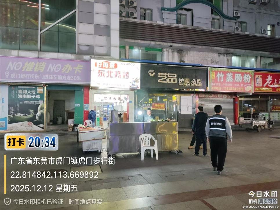 尊敬的市民,您好!您反映的问题已收悉,现回复如下:接投诉后,我分局于2025年12月12日派出执法人员到虎门镇步行街东北烧烤和湖南小碗菜店铺勘查,针对东北烧烤店存在未开启油烟净化设备导致油烟直排及客人店外就餐噪音问题,执法人员已当场责令商户营业期间必须全程开启油烟净化设备,确保油烟经处理后达标排放,并劝导店外就餐客人就餐期间及时控制噪音,后续我分局将跟踪整改落实情况。针对湖南小碗菜店铺油烟问题,经对比您提供的照片,执法人员现场核查发现照片反映的为数月前的情况,与当前实际不符。目前该店已按要求安装油烟净化设备。执法人员已向商户宣传相关法规,明确要求其定期对设备进行清洗、维护和保养,并做好运行及维保记录,保存期限不少于一年,确保设施长期有效运行。如有城市管理方面的问题,可致电东莞市城市管理和综合执法局虎门分局24小时值班电话:89328222或通过微信公众号“东莞城市管理”进行反映。 感谢您对城市管理工作的监督与支持!