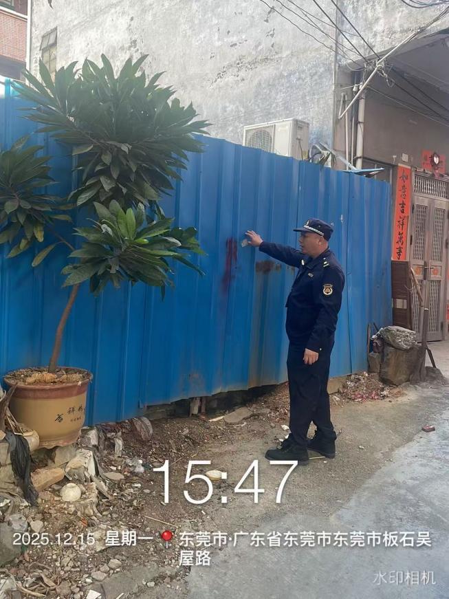 尊敬的市民,您好!您反映的问题已收悉,现回复如下: 收到反映的情况后,我分局执法人员于2025年12月15日09:32、09:34两次致电您了解情况,您均未接听。并于15:47到现场调查处理。经查,投诉属实。执法人员向当事人通报该投诉事项,宣传相关法律法规,要求其尽快清理,不得影响周边居民正常生活。下来,我分局要求板石村城管办落实属地管理原则,加强巡查监督和整治。 如有疑问,请联系常平城管分局板石驿站,联系电话:18822962029。感谢您对我们工作的理解和支持!