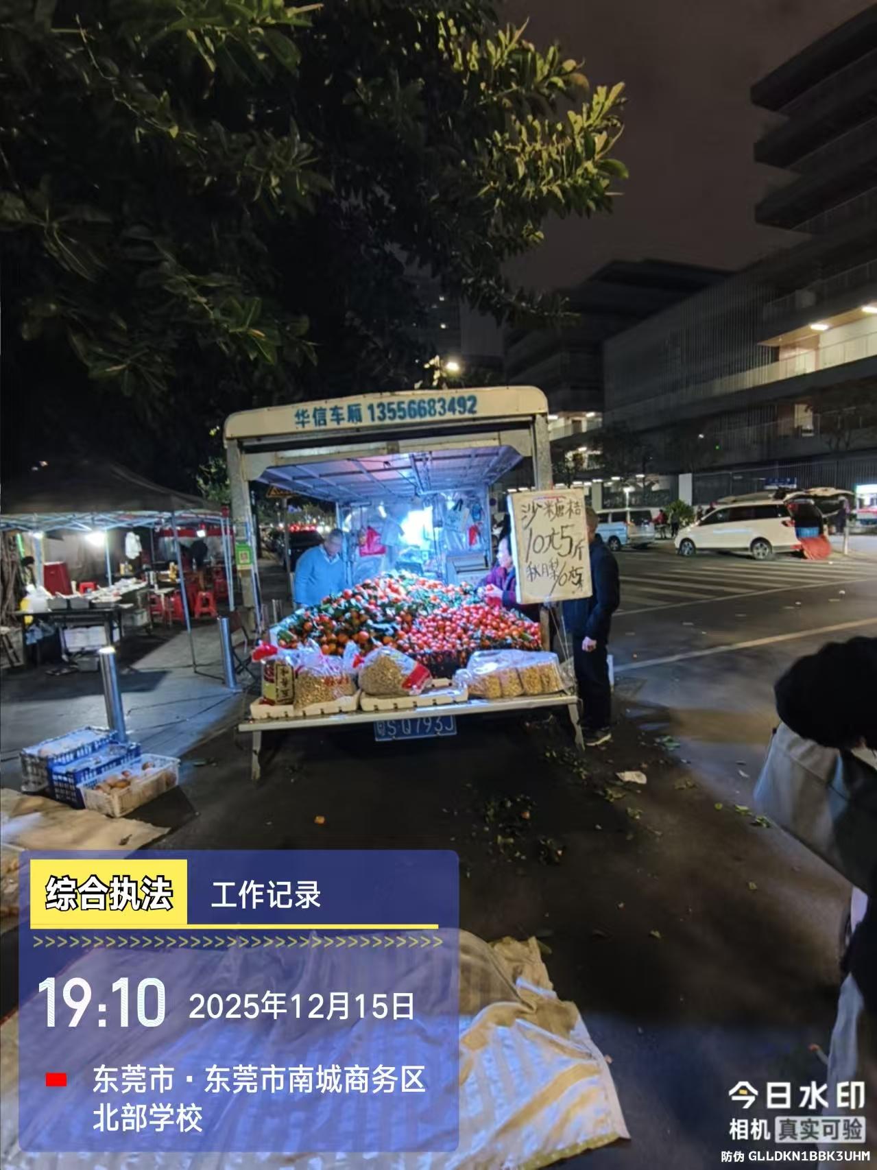 尊敬的市民,您好! 您反映的问题已收悉,现回复如下: 收到反映的情况后,南城城管工作人员对诉求进行办理,现场发现摊贩。根据《无证无照经营查处办法》的相关规定,执法人员要求摊贩清理占道物品,不得占道经营,以免影响周边市民的通行。在执法人员的督促下,占道摊贩清理干净现场后离开。如您发现有类似的情况,请联系城市管理和综合执法局南城分局,联系电话22905433。 感谢您对我们工作的理解和支持!