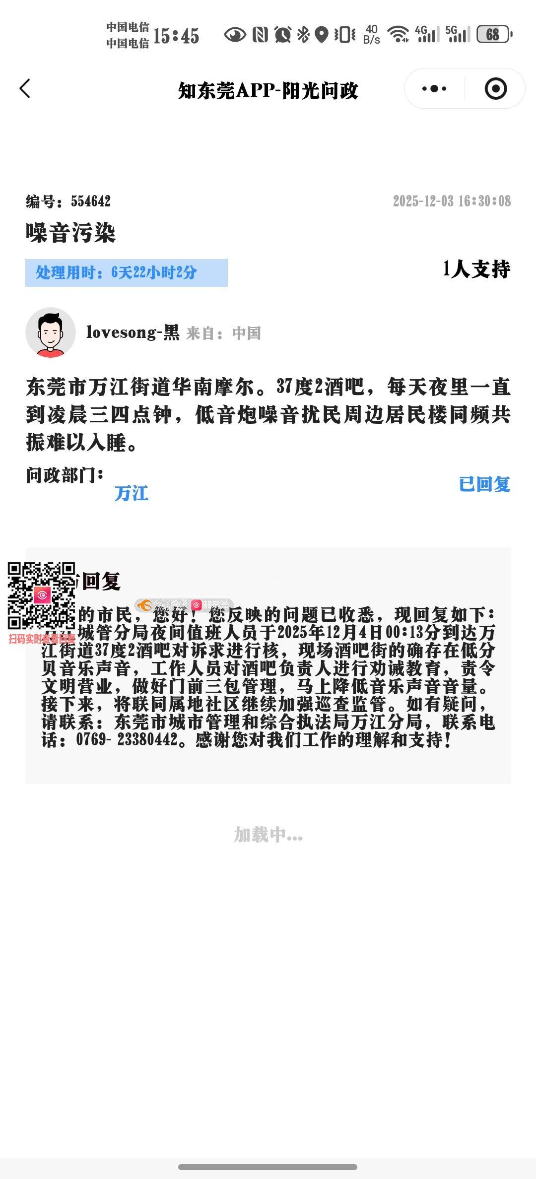 东莞市万江街道新城社区37度2酒吧深夜低频低音炮干扰。