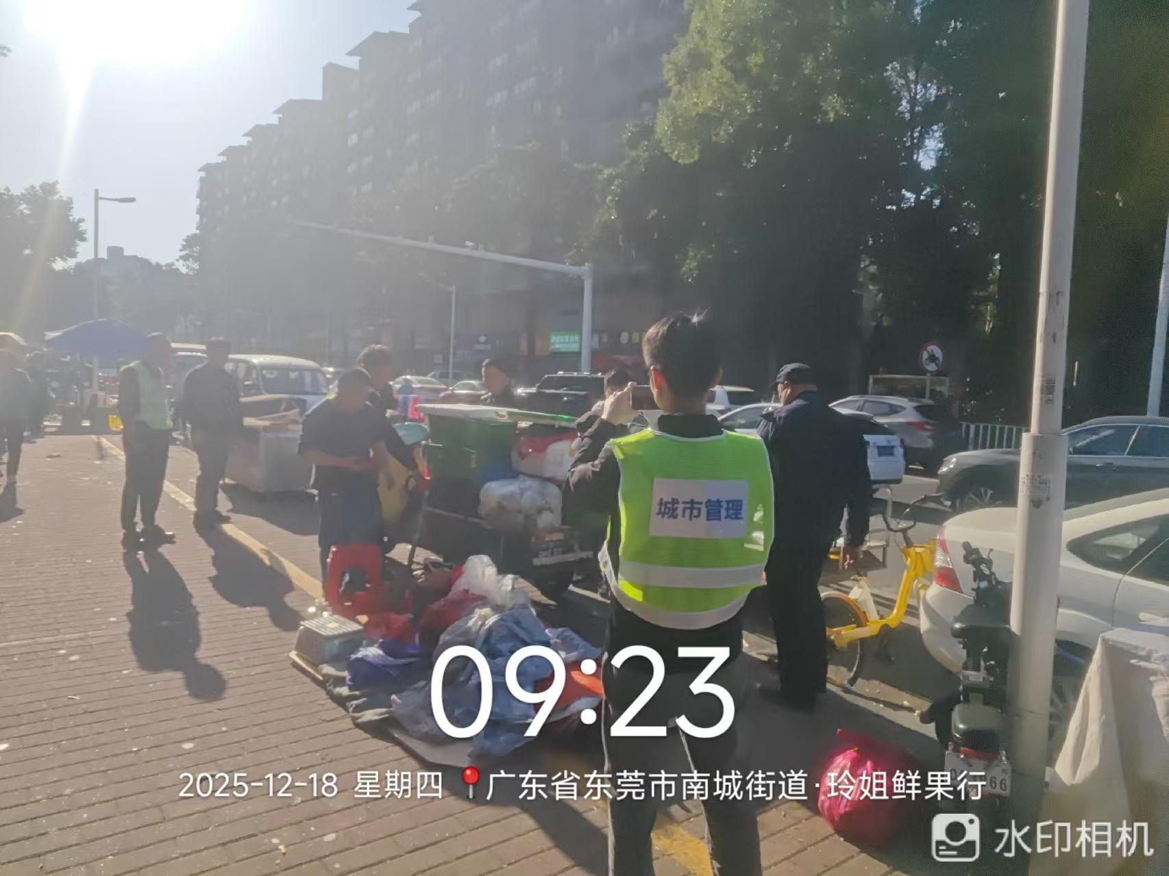 尊敬的市民,您好!您反映的问题已收悉,现回复如下: 此处确实存在摊贩占道经营的情况,已经对周边通行秩序和环境造成了影响。执法人员现场对占道摊贩进行依法劝导,告知其占道行为对周边居民生活、道路通行的影响,引导摊贩有序撤离现场。同时,针对摊贩撤离后遗留的杂物、地面油污等问题,联合社区工作人员、小区物业开展现场清理,全面恢复该路段车道与人行通道的正常通行秩序,降低对周边居住环境的影响。如有疑问,请联系:东莞市城市管理和综合执法局万江分局,联系电话:0769- 23380442;感谢您对我们工作的理解和支持!