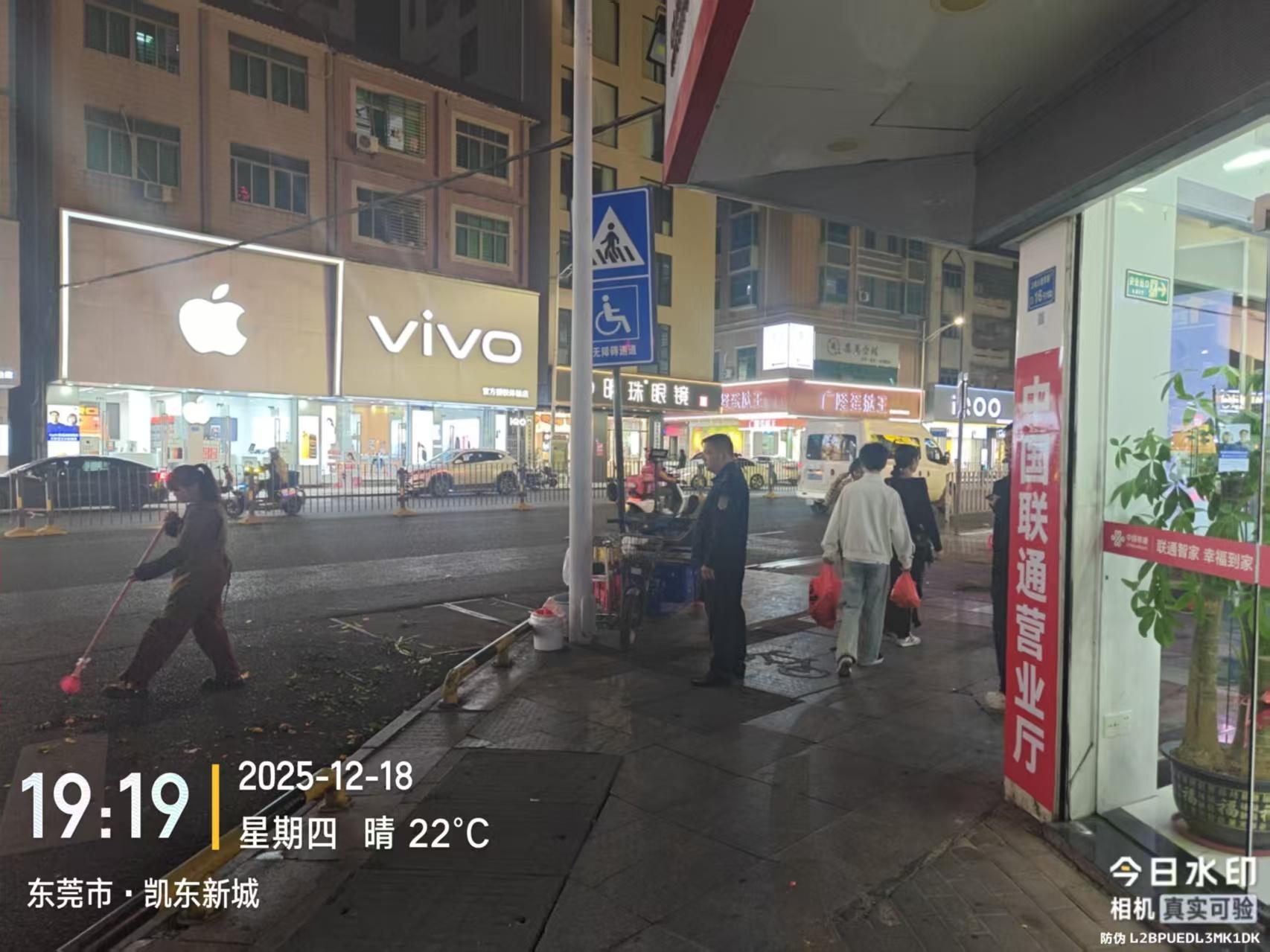 位于大岭山镇教育路与玉兰街交汇路口,凯东新城中央街路段,之前有投诉过在这设路口导致车辆调头不能一步到位,以致直向道和对面道堵车,关于教育路拥堵原因,经你们现场勘查与调研,当前拥堵的主要成因并非中央护栏的设置,而在于部分路段存在的违规停车、占道摆卖等行为,这些行为挤占了有限的道路资源,影响了车辆的正常通行。对此,交通分局已明确后续工作方向:将主动联合交警大队、城管分局等部门,建立联动整治机制,持续加大对教育路沿线违规停车、流动摊贩占道经营等行为的查处与清理力度,全力保障道路通行空间。这是你们当时的回复。后续交警大队确实把两边路段停车位清除,也画了黄线。但是,城管分局并不给力,凯东中央街这路段一到傍晚6点后就被一排的流动摊位,贩占道经营(占人行道,盲道,自行车电动车停车位),导致电动车三轮无处可停,直接停在交警队画黄线禁停车处,而且很多占黄线停的三轮车和小货车都是占道经营摊贩自己的车,这样一来车辆调头依然不能一步到位,又恶循环的回到拥堵状态。希望城管部门尽职尽责,像交警大队学习,拿出工作态度,不要拖后腿。地铁也开通了,凯东新城中央街与镇政府紧挨着,这是标致性地段,要让外地人来到看到交通有序,舒服整洁的大岭山,不要寒了民众的心!