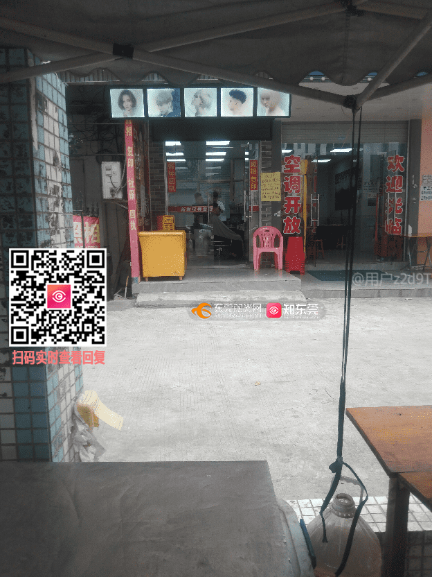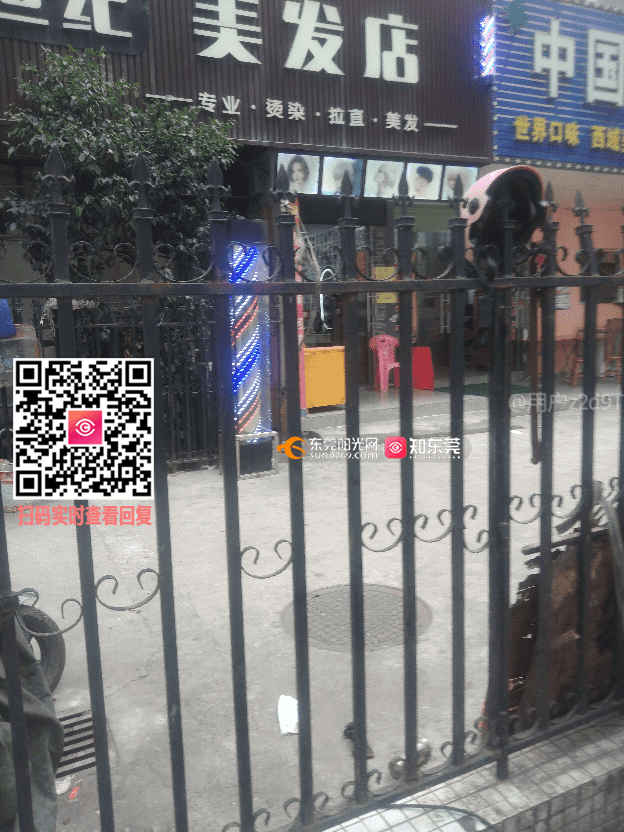 东莞市塘厦镇科苑城峰景3号新世纪美发店私自非法拆除政府围护栏。