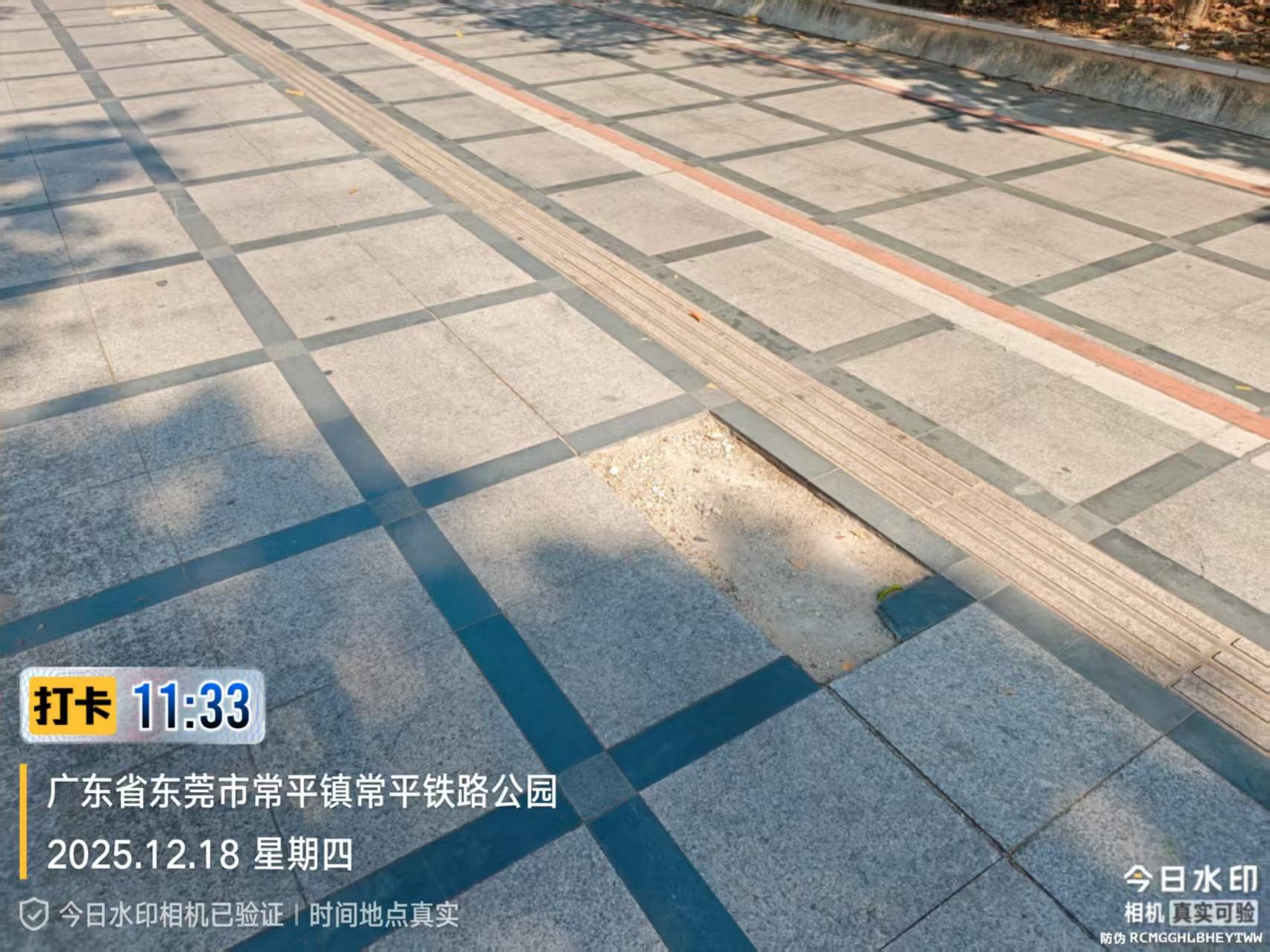 收到您反映的情况后,我分局执法人员于2025年于12月18日11:33对诉求进行现场核实,并于15:49致电您了解情况。经查,常东路和公园路交叉口人行道存在部分损坏,我分局已督促公用事业服务中心对您反映的人行道损坏问题制定维修方案,并加快维修。