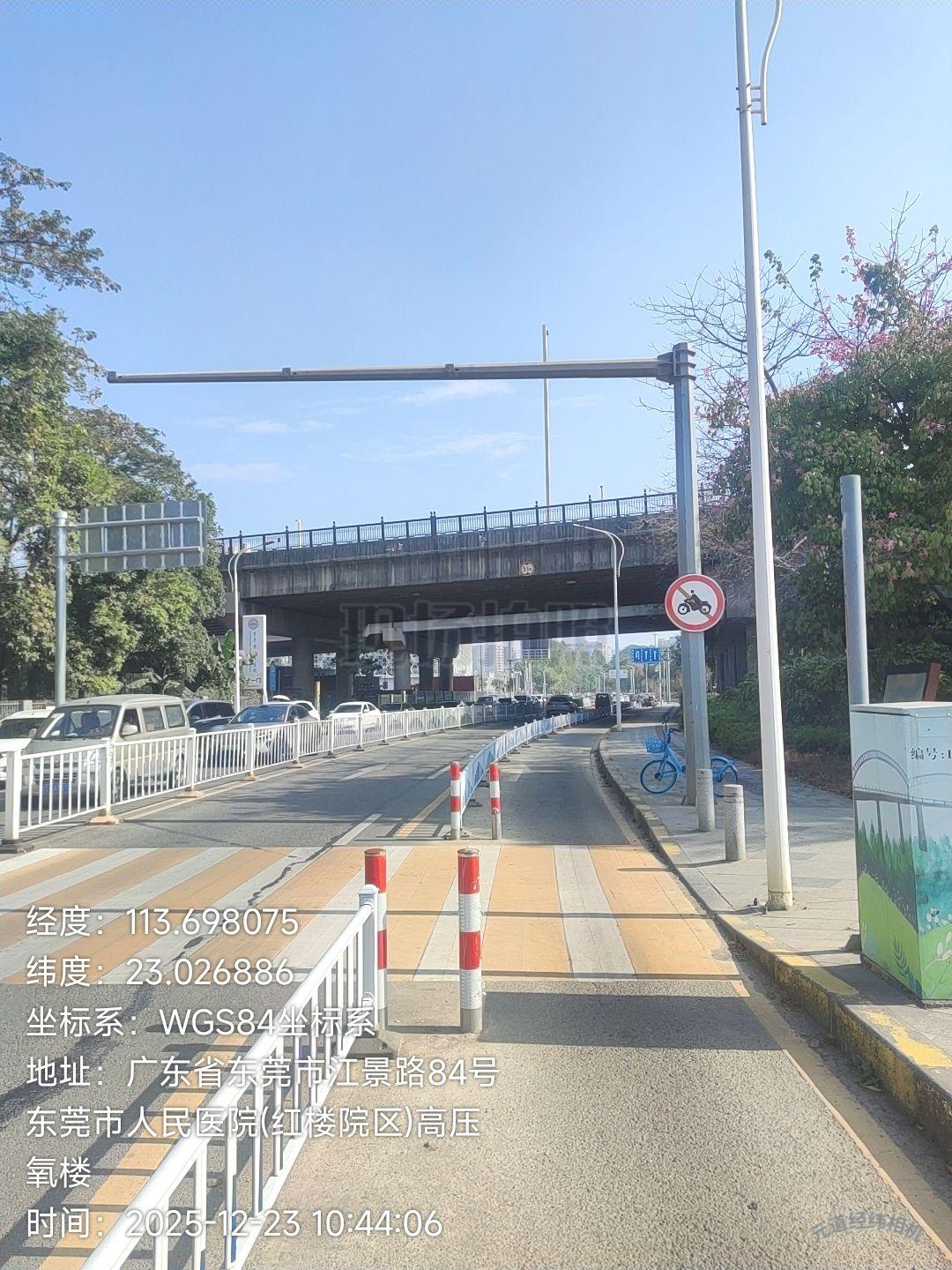 东莞市万江街道东莞市人民医院(红楼院区)东南1门隔壁的一条人行道斜坡上有两条电线杆,挡住了电动车出行希望领导能将他迁移位置。谢谢
