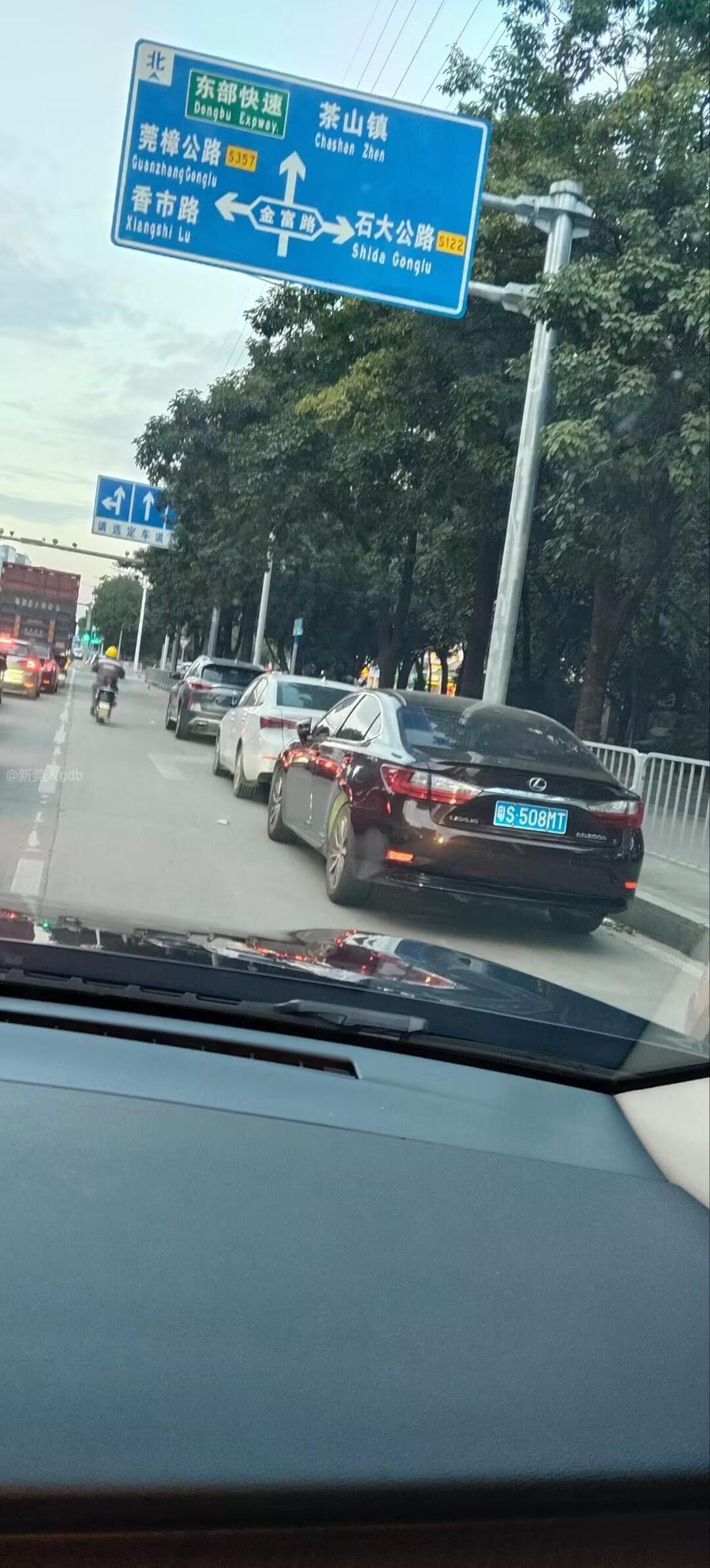 金富路与松柏路交叉红绿灯路口占道乱停车影响右转通行