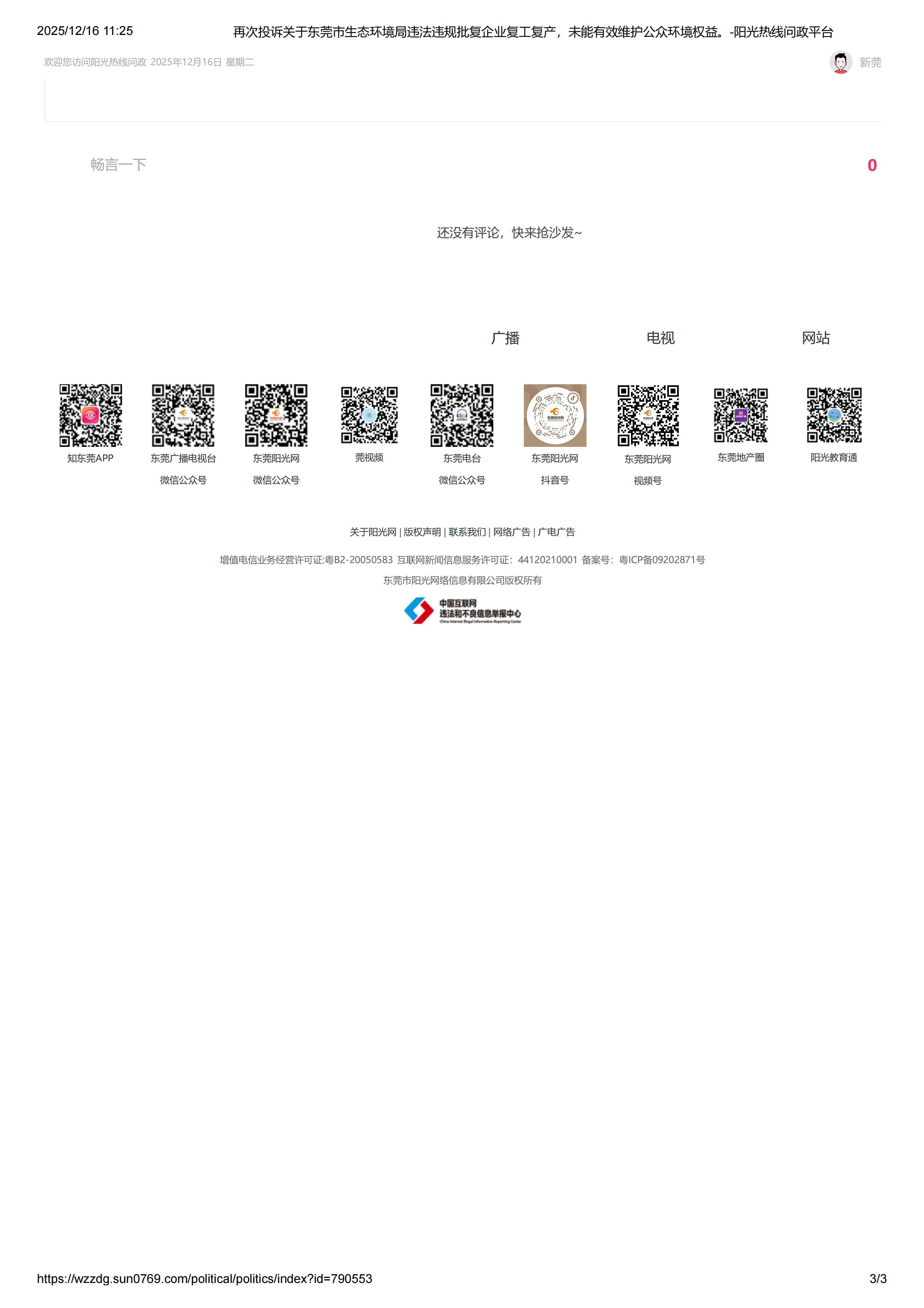 关于东莞市生态环境局破坏生态环境、公然包庇企业行为之一