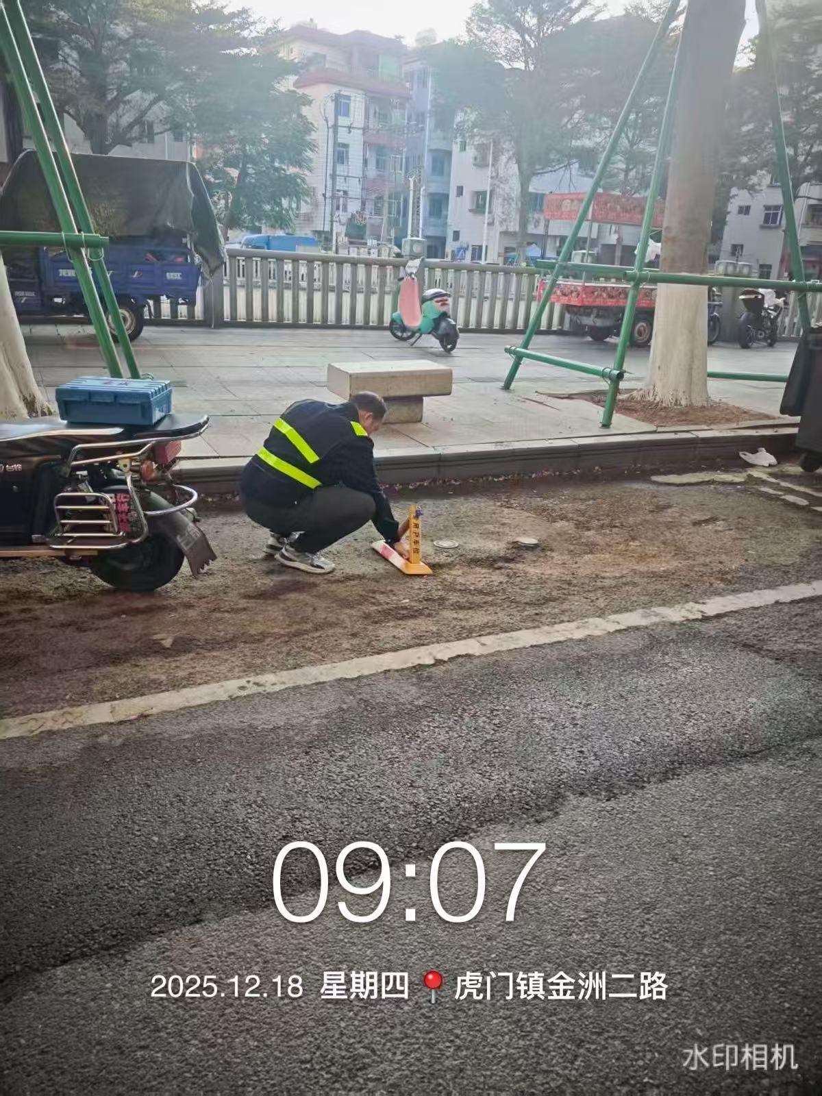 尊敬的市民,您好!您反映的问题已收悉,现回复如下:我社区于12月18日上午派出工作人员前往上述地点查看情况,现工作人员已经拆除了地锁。如市民还有疑问,可致电东莞市虎门镇金洲社区城管办85181371了解,非常感谢市民对我社区工作的支持!