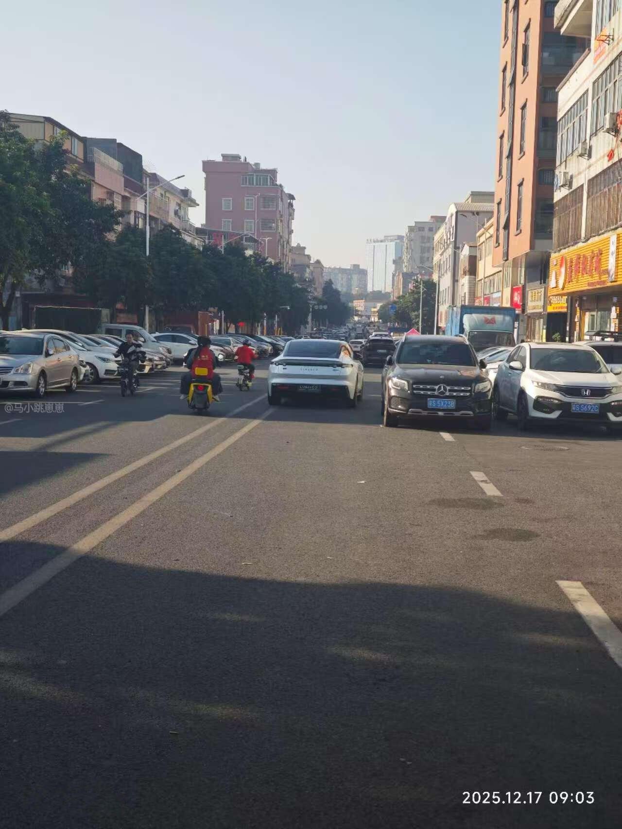 东莞市寮步镇龙泉路为双向四车道(除停车位外),道路中间有双黄实线。单侧常有机动车并排、三排违停,上下班高峰期拥堵严重,仅容一车通行,影响交通与应急安全。恳请部门专项整治、加强监管,保障道路畅通。