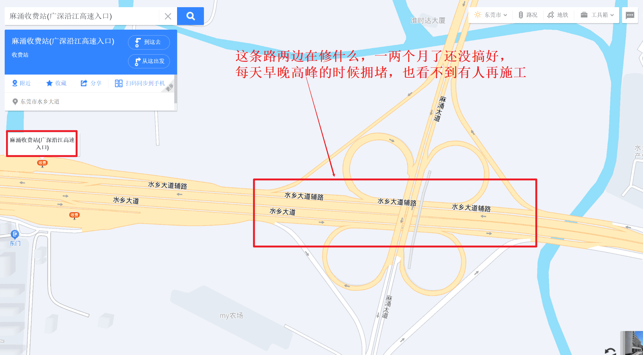 水乡大道接近麻涌高速收费站出入口附近的路段,施工一两个月了,还没搞好,平时也不见施工人员,那块地方到底是在做什么的施工,严重影响到早晚高峰的交通行驶。能否加快施工进度,尽快恢复路段的正常行驶。