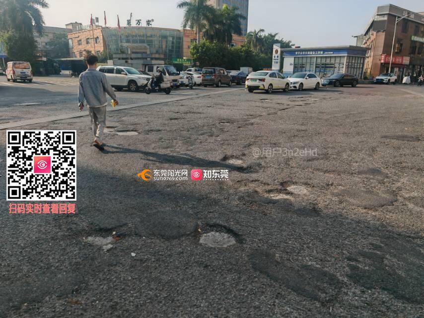 东莞市常平镇木伦村天鹅湖路天鹅湖广场门口路段道路坑洼严重