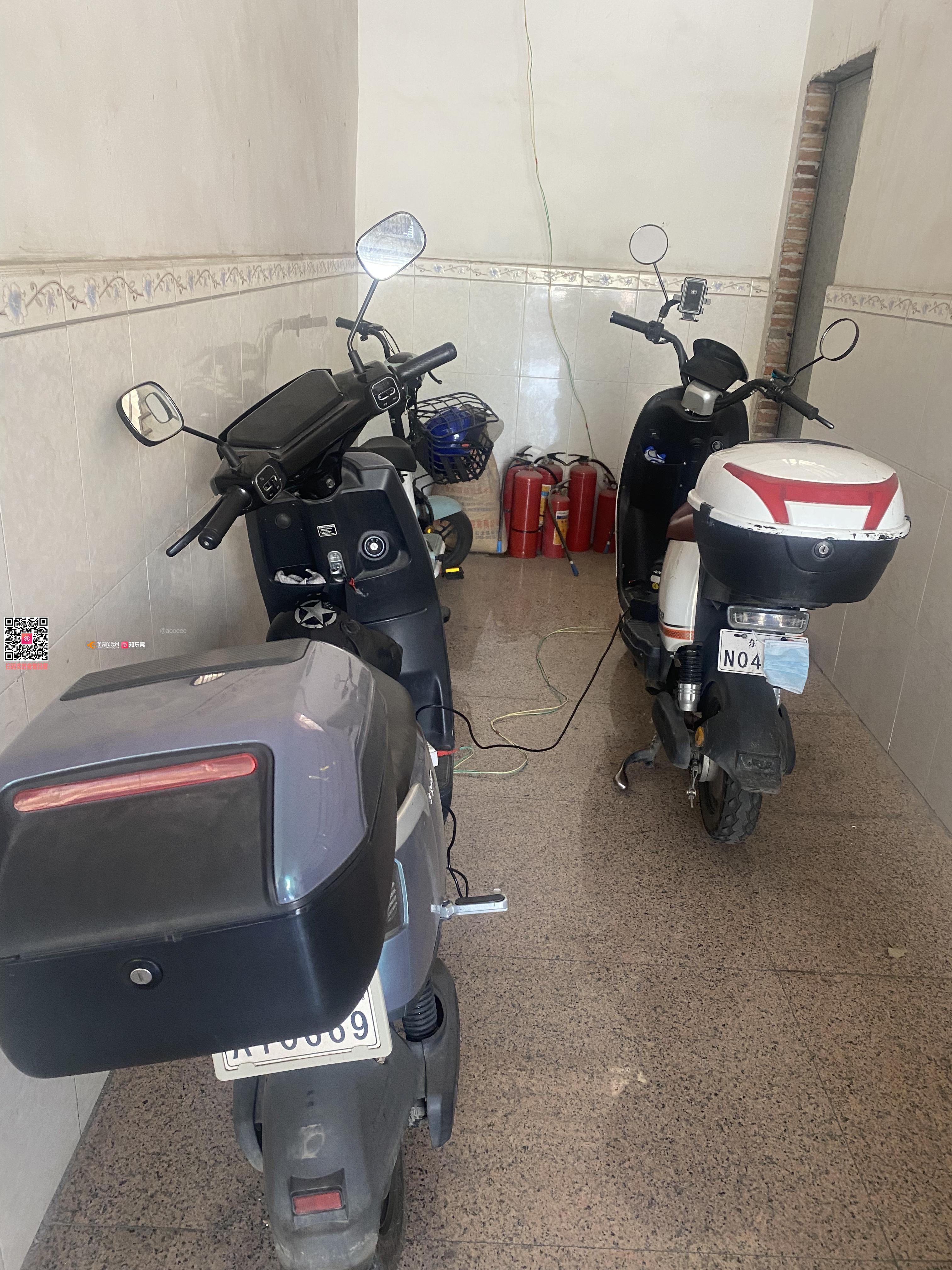 公共楼梯旁乱拉电线供电动自行车充电