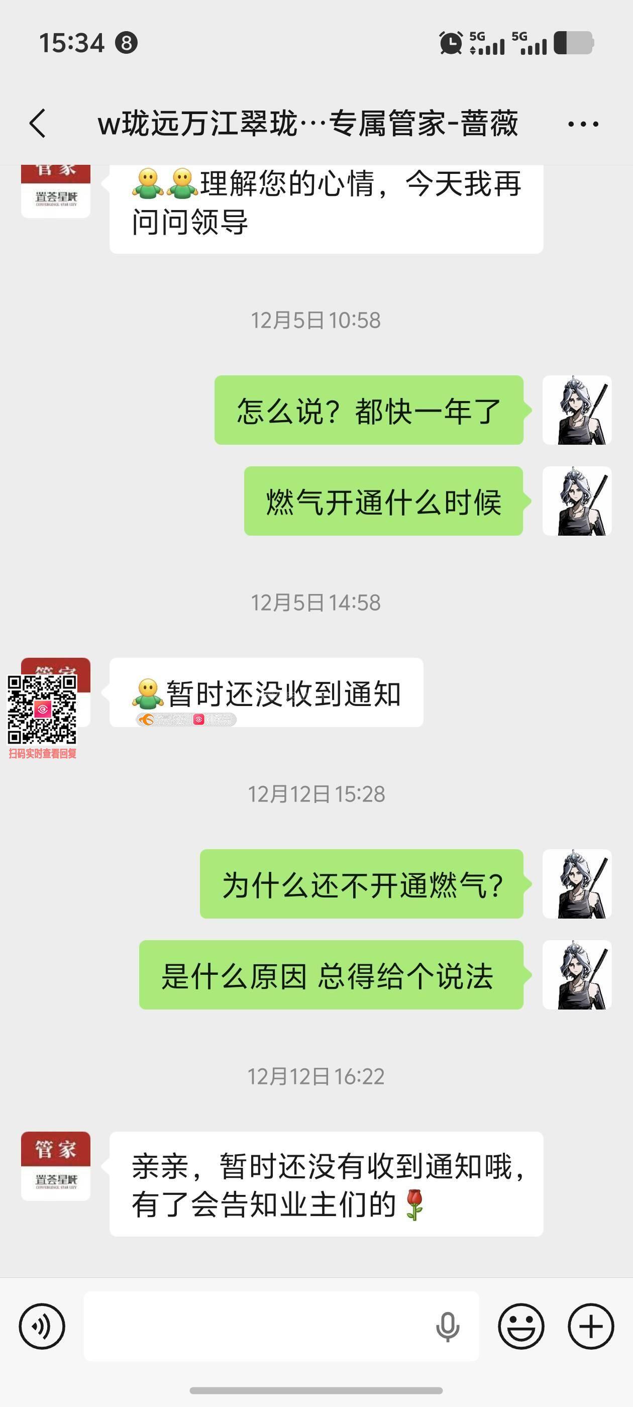 我是万江珑远翠珑湾2期1栋公寓楼业主,这栋公寓楼延迟到2025年3月份交楼,至今很多业主装修完成入住了,但是燃气开通,还一直在推脱。我希望开发商可以履行义务开通燃气。而不是一而再而三的推脱。当初购买房子的时候是因为能开通燃气才购买,如果现在开不了天燃气,我要求退房,并赔偿损失。