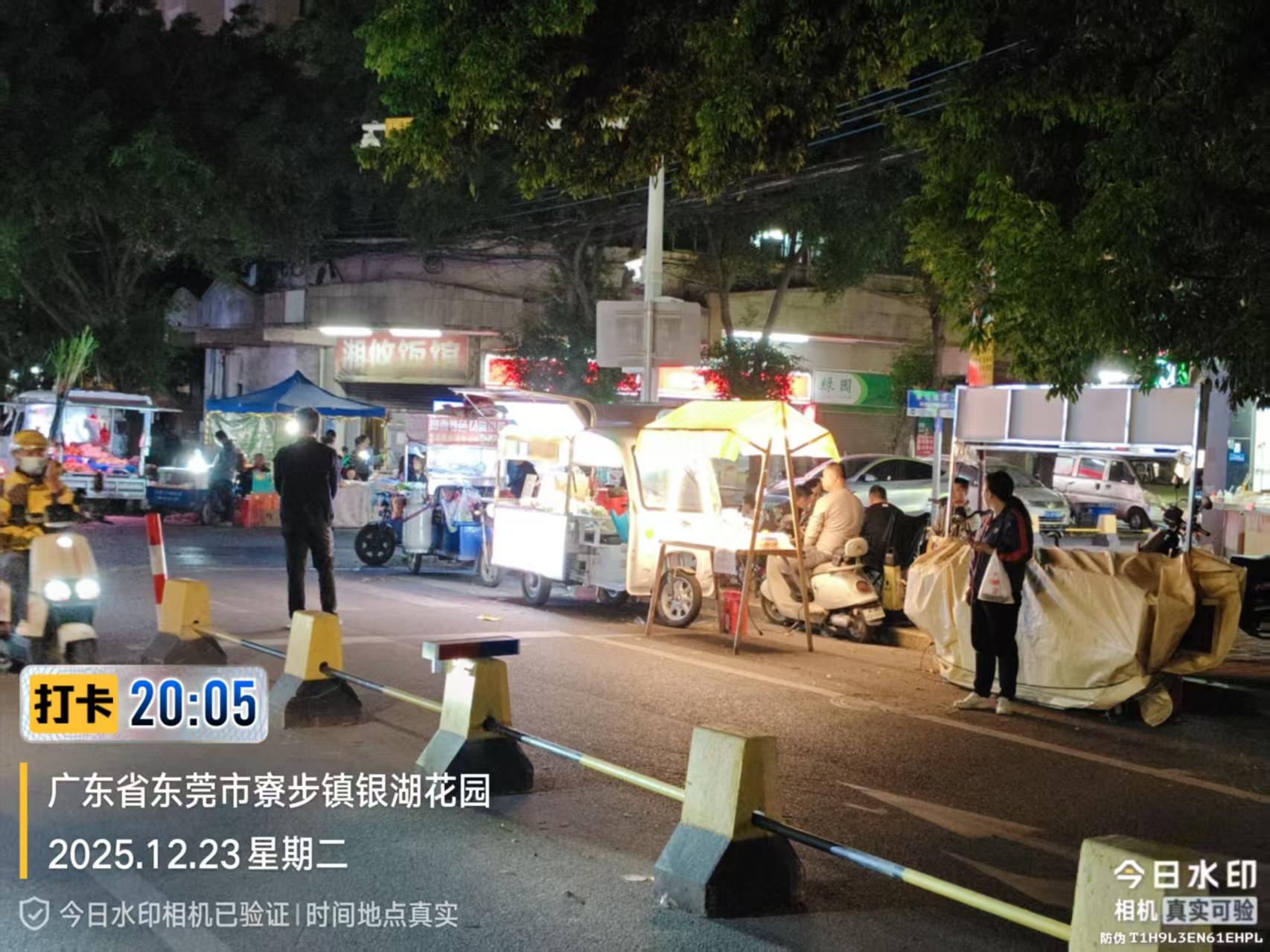 尊敬的市民,您好!您反映的问题已收悉,现回复如下: 城管分局执法人员于2025年12月23日晚上到现场调查,经核查,情况属实。执法人员对占道商贩进行教育,责令立即整改,严禁占道乱摆卖和噪声扰民行为。下来将进一步加强巡查监管。感谢您对我们工作的理解和支持!