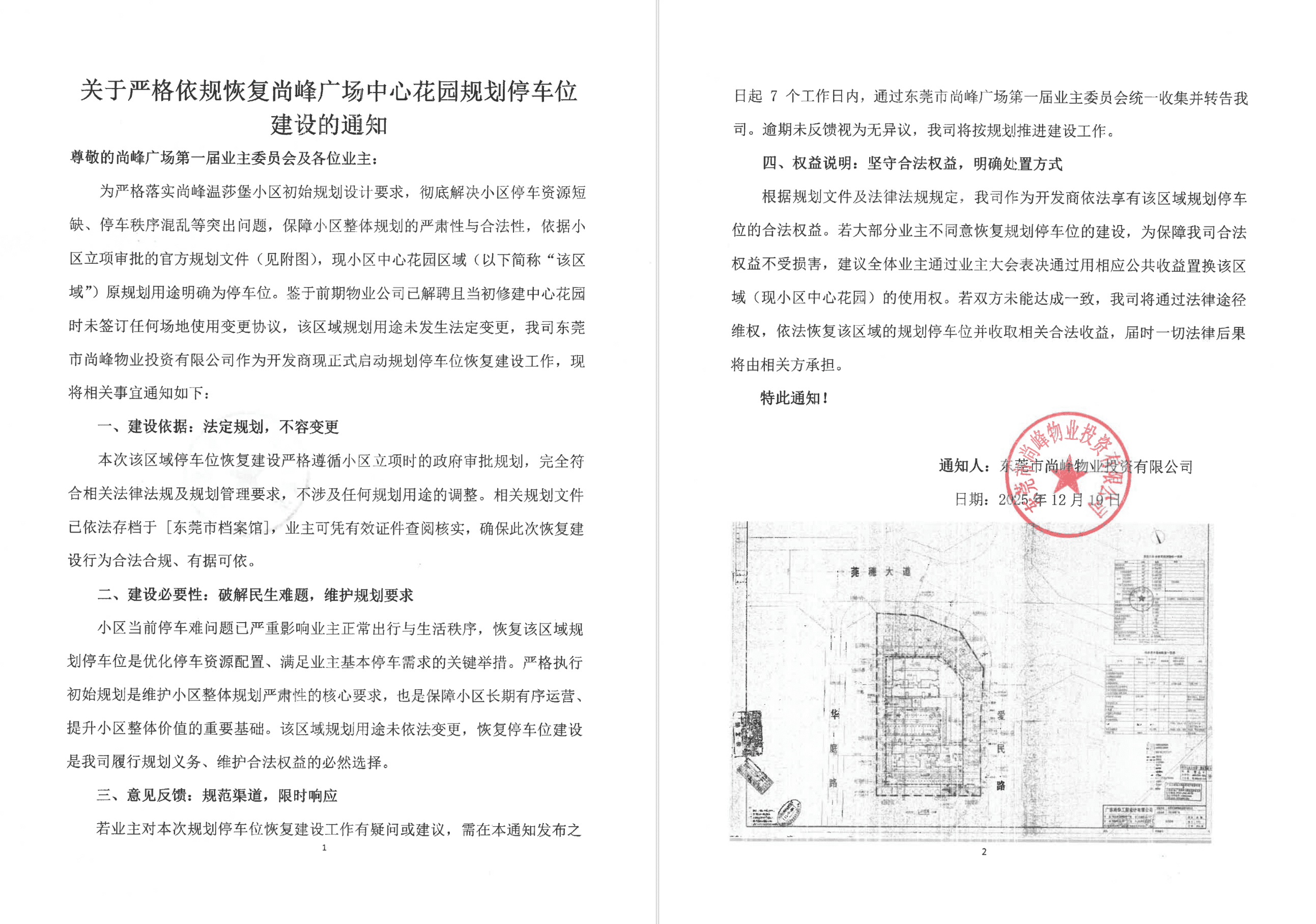 4.开发商发函要改建小区中心花园为停车场。(已交房十年无权限改造,万江房管所表示非管辖范围)