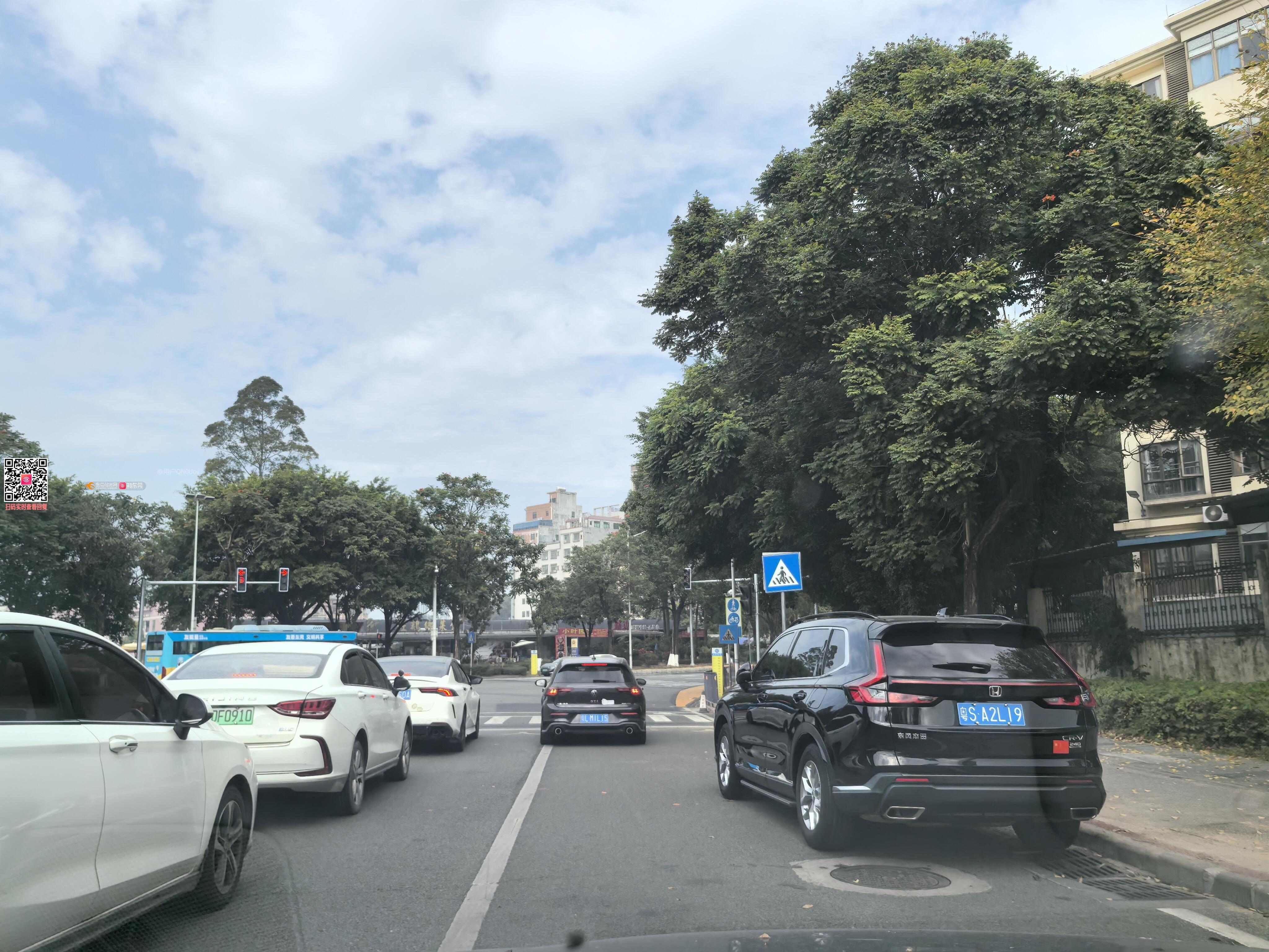 松山湖工业西四路右转出工业西路的红绿灯路口,右转专用道经常被。请汽车违规停放、占用严重影响通行